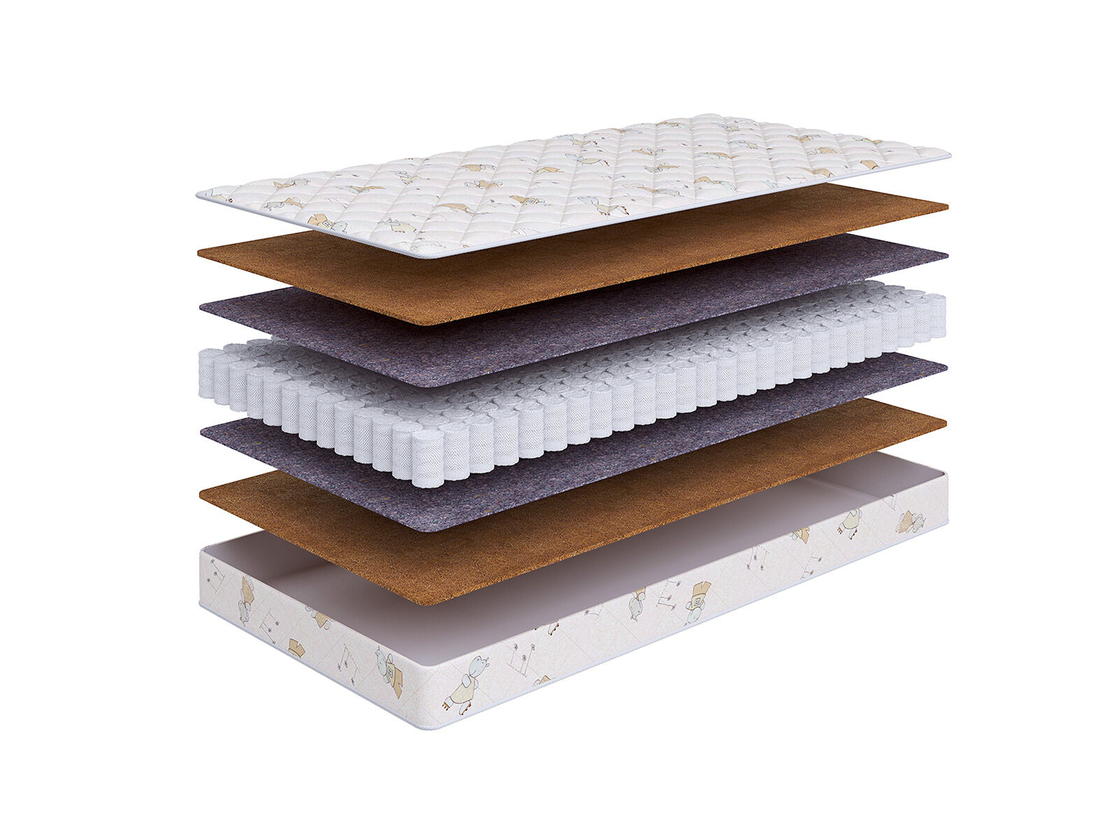 Кокосовая койра придает поверхности матраса жесткость, обладает превосходными ортопедическими и эксплуатационными свойствами.