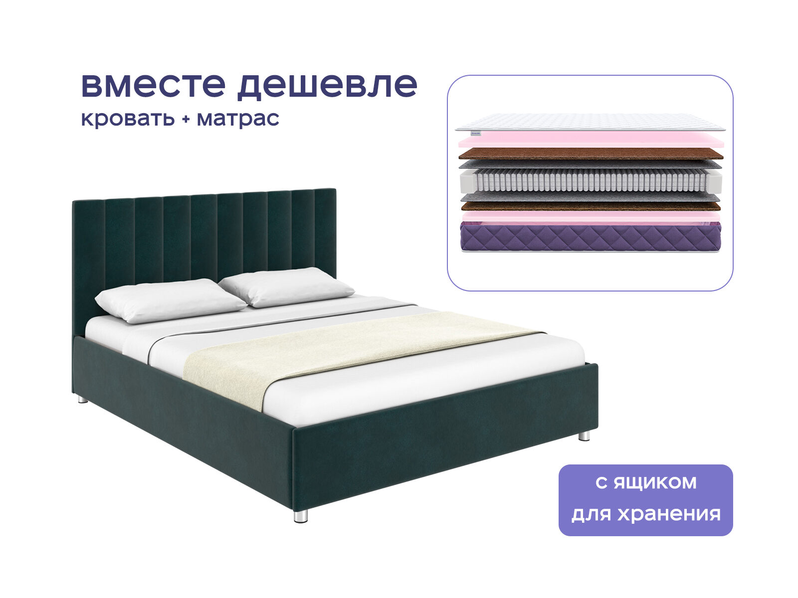 Модель отличается лаконичным изголовьем, которое украшает вертикальная параллельная стёжка. Стильная модель выделяется продуманным дизайном и украсит любой интерьер. Обивка кровати изготовлена из мягкого велюра. Короб производится из ДСП. В комплект входит ортопедическое металлическое разборное основание с подъемным механизмом.