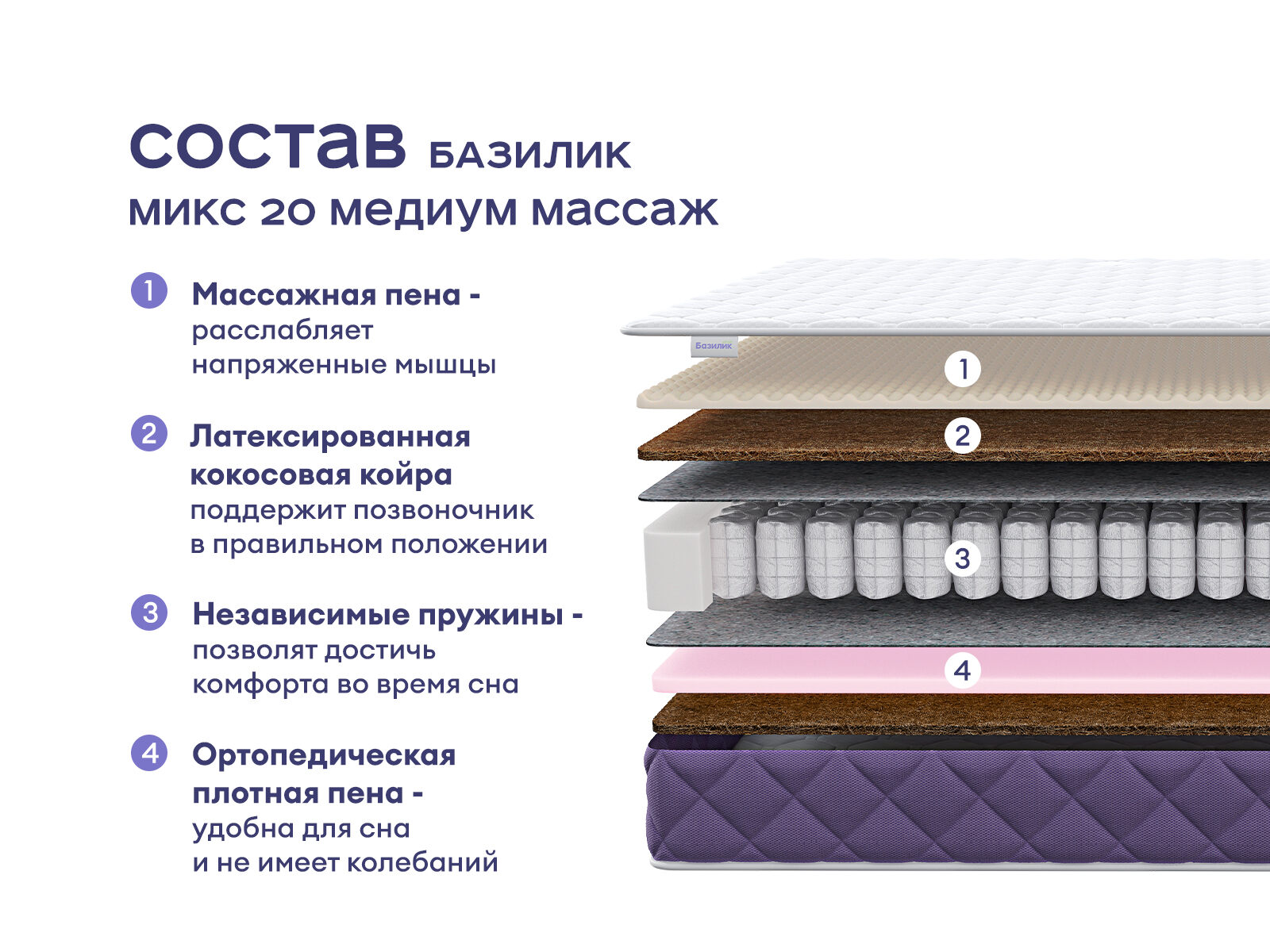 Комплект Левита с подъемным механизмом + Базилик Микс 20 Медиум Массаж — это гармония элегантности и комфорта для вашего отдыха. Стильная кровать украсит любую спальню и матрас, точечно подстраивающийся под тело, дополнен массажными зонами для расслабления мышц — как в спа-салоне. При покупке комплекта вы экономите до 36% от стоимости. Идеально для тех, кто хочет совместить современный дизайн с ортопедическим эффектом, не жертвуя практичностью.