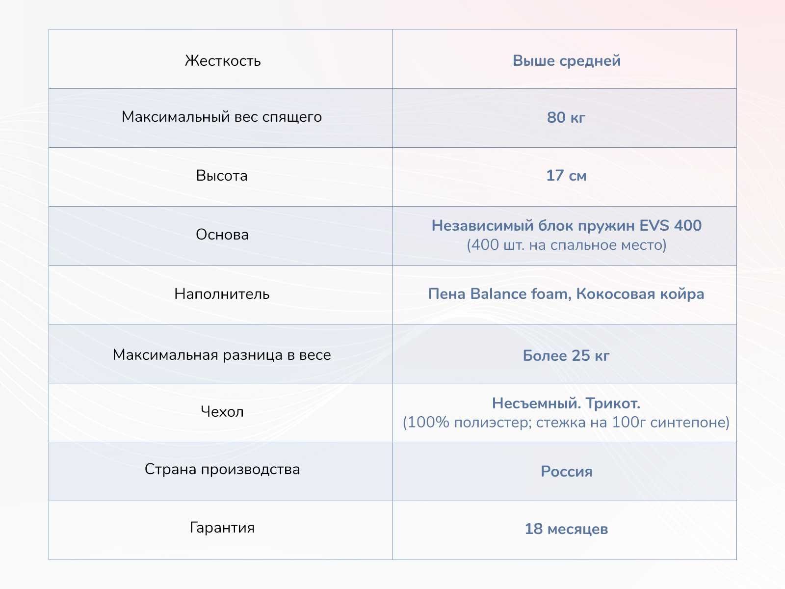 Эта модель объединяет классическое сочетание материалов, надёжную поддержку и удобство в использовании, что делает её отличным выбором для здорового сна.