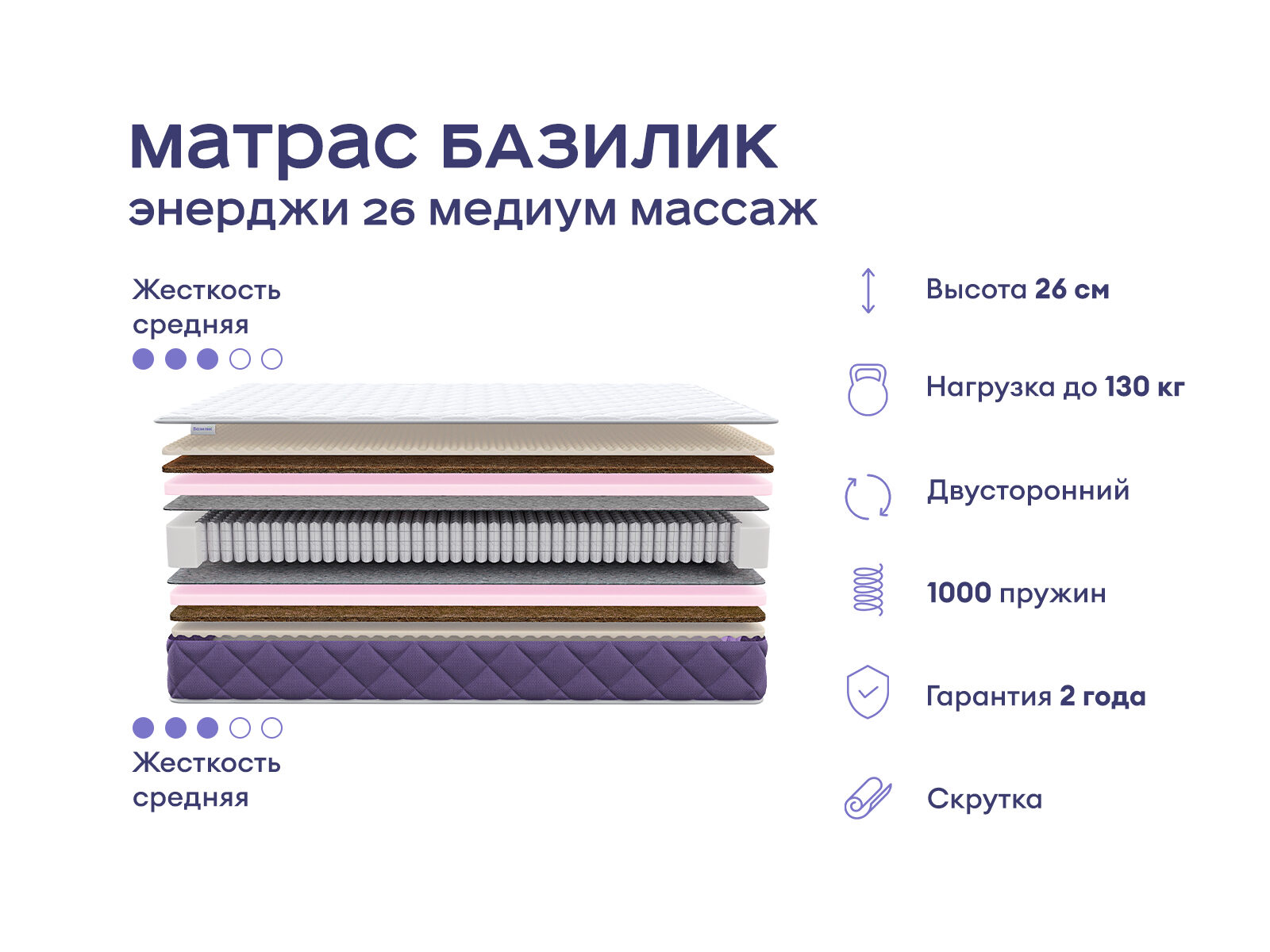 Модель обеспечивает комфорт и расслабление с ортопедической поддержкой. Матрас создан для глубокого расслабления и улучшения кровообращения. Независимый пружинный блок и специальные наполнители обеспечат удобный и здоровый сон. Классический средний уровень жёсткости и две равноценные спальные поверхности делают модель универсальной. С этим матрасом сон станет полноценным моментом отдыха и расслабления, добавляя французский шарм вашему спальному месту.