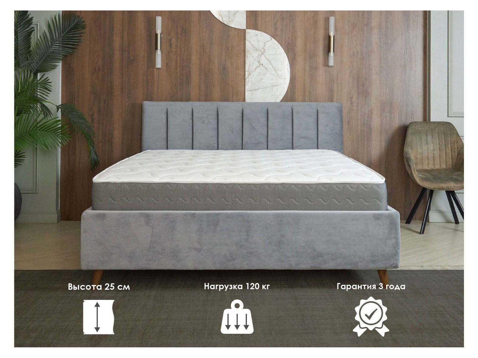 Матрас сочетает зонированную поддержку независимых пружин, комфорт микромассажной пены и надёжную кокосовую койру, создавая адаптивное спальное место для здорового сна.