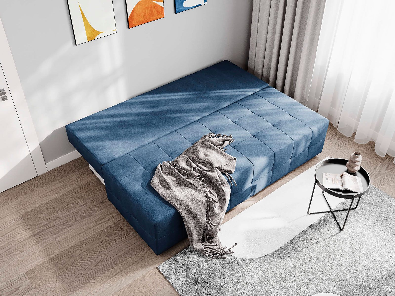 Диван для сна в современном стиле без подлокотников с механизмом трансформации еврокнижка и коробом для хранения.