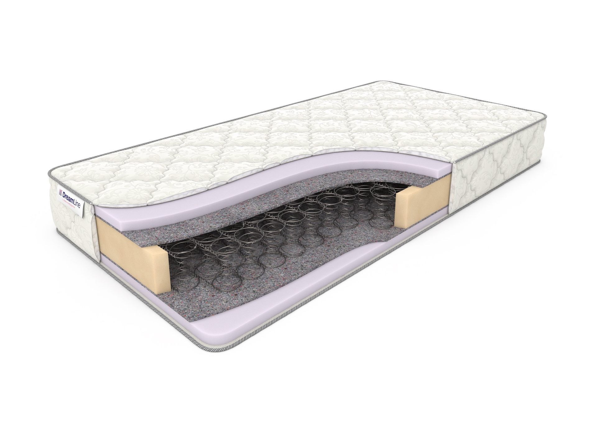 Матрас Eco Foam BS основан на зависимом пружинном блоке «Bonnel», каждая пружина в котором соединена с соседней. Это недорогой, но достаточно надежный вариант, подходящий для дачи или для гостевой кровати. Для защиты пружинного блока по обеим сторонам от него расположены слои термовойлока. Наполнителем матраса служит пенополиуретан (искусственный материал средней жесткости) - по слою с каждой стороны. Высота матраса составляет 18 см, он рекомендуется людям весом до 120 кг. Матрас Eco Foam BS оснащен чехлом LUX (хлопковый жаккард, простеганный на антиаллергенном холконе 200 гр./м2 ). По желанию покупателя, в чехол может быть бесплатно вшита смотровая молния.