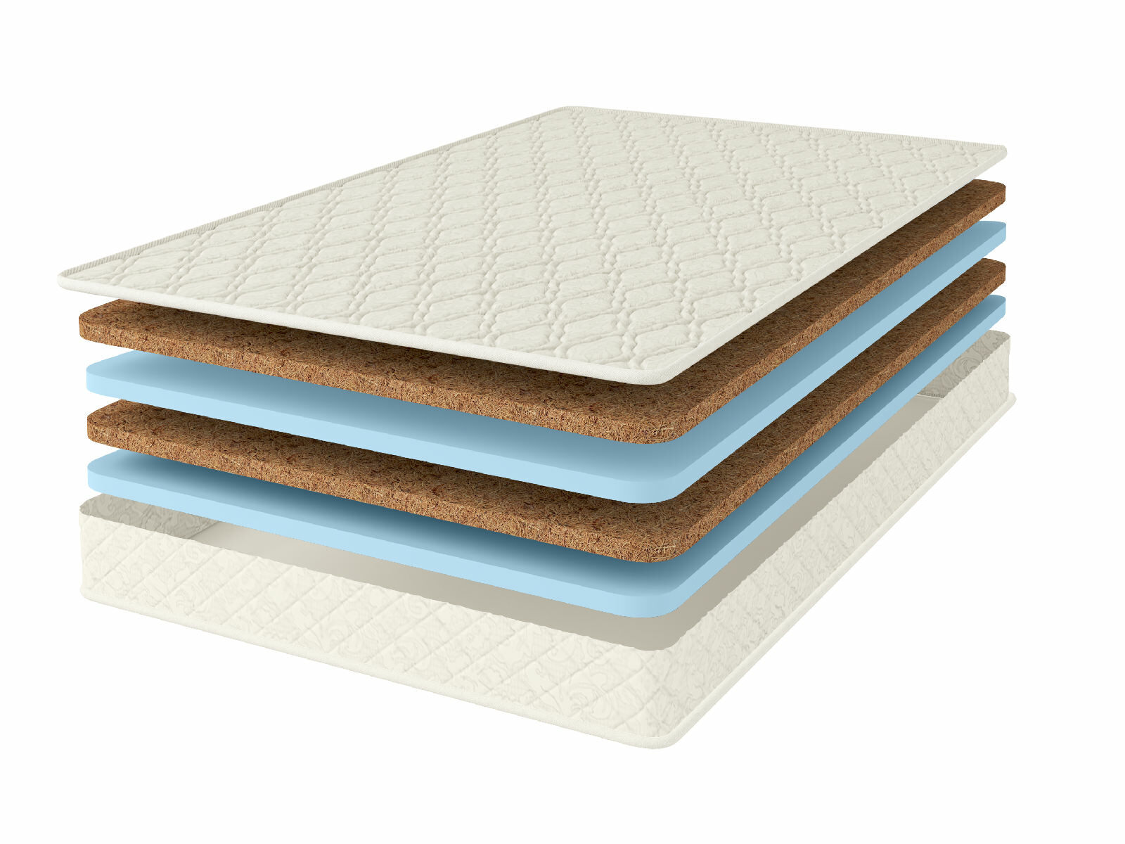 Внутри матраса установлены сразу два вида наполнителей, которые чередуются друг с другом. Природная кокосовая койра отвечает за более жёсткую сторону, а умеренная плотная пена Ecofoam передаёт мягкость противоположной поверхности.