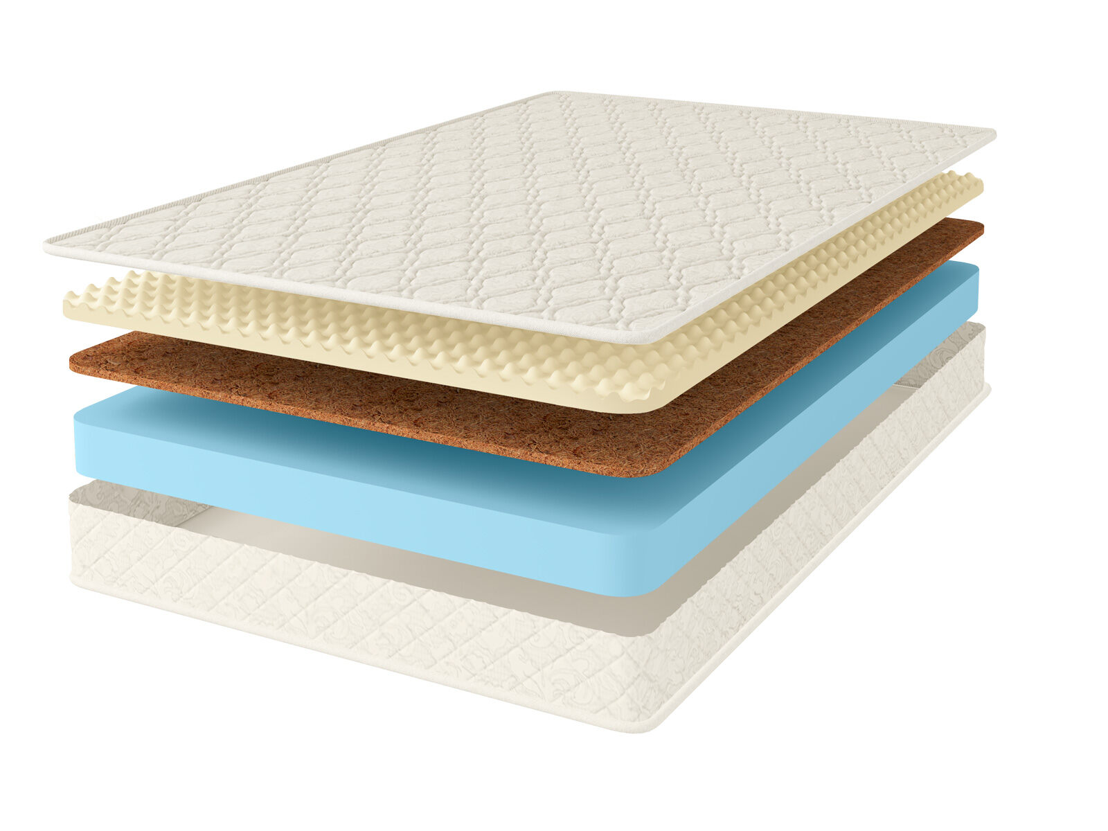Чехол матраса из хлопкового жаккарда, который обладает высокой износостойкостью, простеган на Холлконе и имеет очень длительный срок службы. Ткань чехла может немного отличаться по рисунку, а также по оттенку цвета, это не влияет на ее свойства и качество.