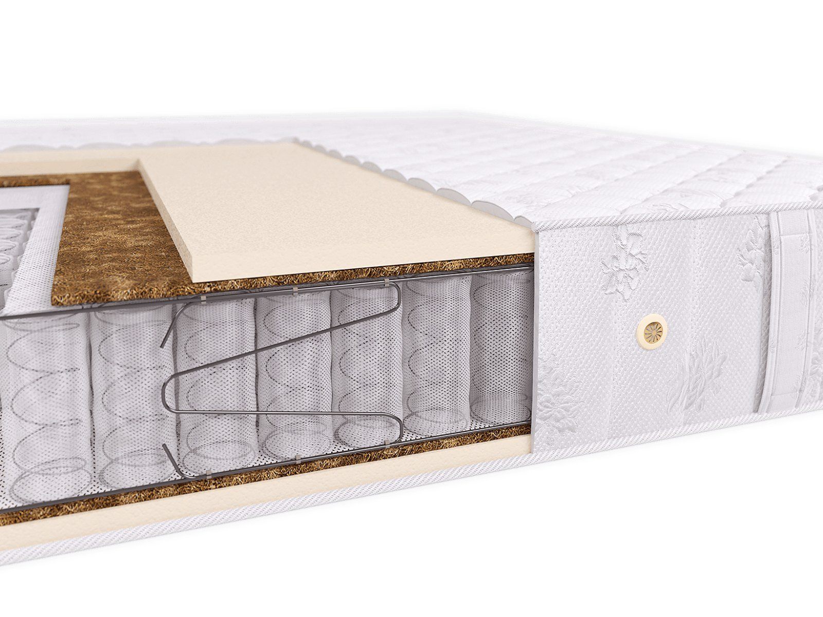 Матрас Эко Престиж S600 выполнен на основе блока независимых пружин "Покет" (S500), обеспечивающего оптимальную анатомическую поддержку телу спящего, искусственного латекса и эко-кокоса (смесь натуральных кокосовых волокон со струттофайбером). Данный матрас имеет симметричную конструкцию и обладает одинаковой средней жёсткостью обеих сторон. Слои эко-кокоса придают матрасу оптимальную жёсткость, а благодаря уникальным адаптационным свойствам искусственного латекса поверхность матраса идеально подстраивается под тело спящего, обеспечивая непревзойдённый комфорт во время сна.