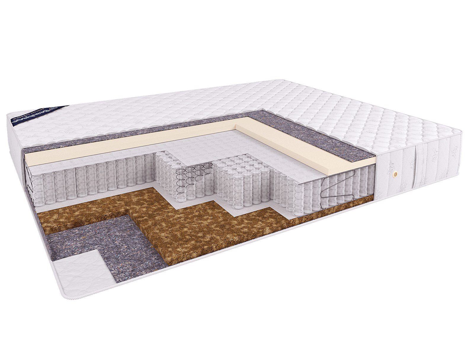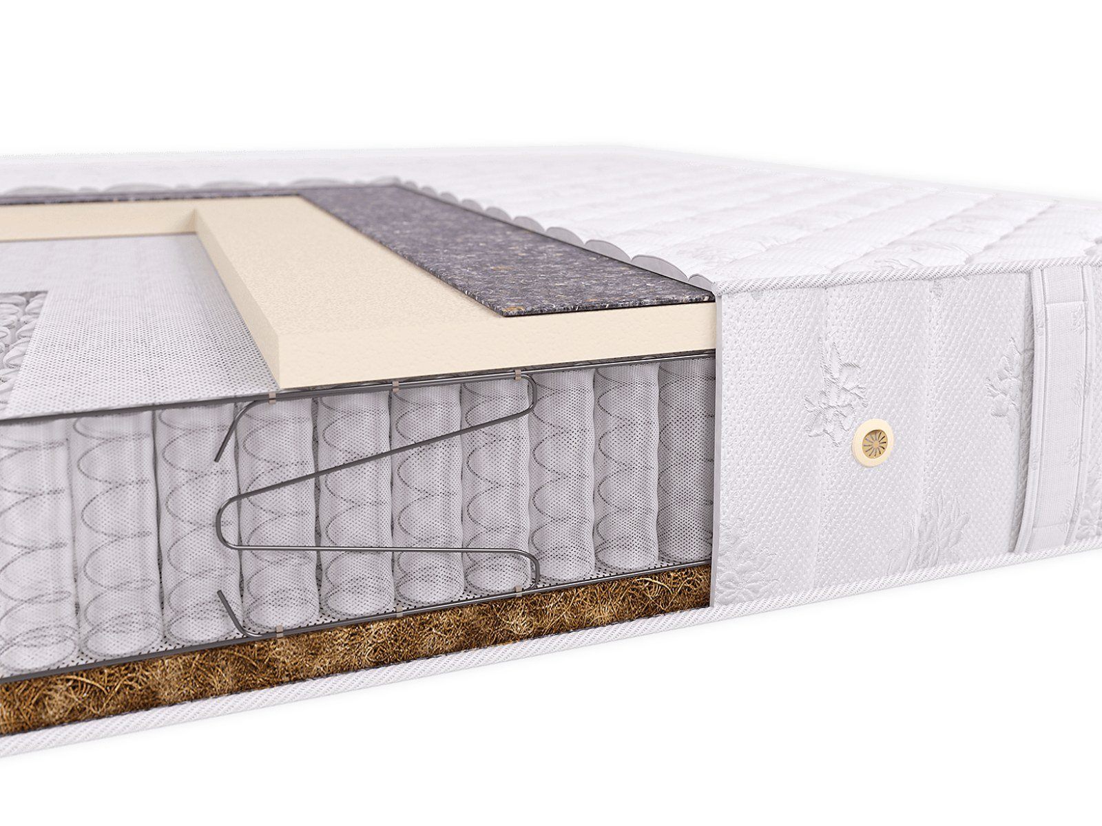 Матрас Эко Шанс S1200 выполнен на основе пружинного блока "Мультипакет", обеспечивающего комфортную анатомическую поддержку телу спящего, искусственного латекса и эко-кокоса (смесь натуральных кокосовых волокон со струттофайбером). Данный матрас благодаря несимметричной конструкции обладает разной жёсткостью сторон, что позволит Вам самостоятельно подобрать для себя оптимальную по комфорту степень жёсткости. Проложенный по одну сторону от пружинного блока слой мягкого искусственного латекса делает поверхность комфортной и упругой. Расположенный по другую сторону от пружин слой эко-кокоса, наоборот, придаёт поверхности высокую жёсткость.