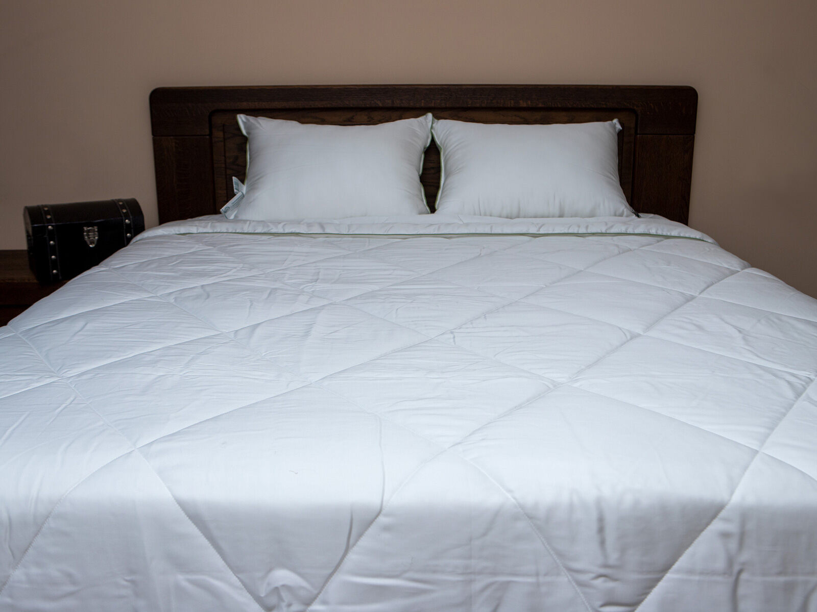 Ткань: 100% LYOCELL (лиоцелл — волокно эвкалиптового дерева) — шелковистая ткань, обладающая явным охлаждающим эффектом. Плотность: 282/186 нитей на 10 см²,121 г/м². Цвет сливочный. Чехол стеганый, наличие молнии для возможности самостоятельной регулировки наполнителя.