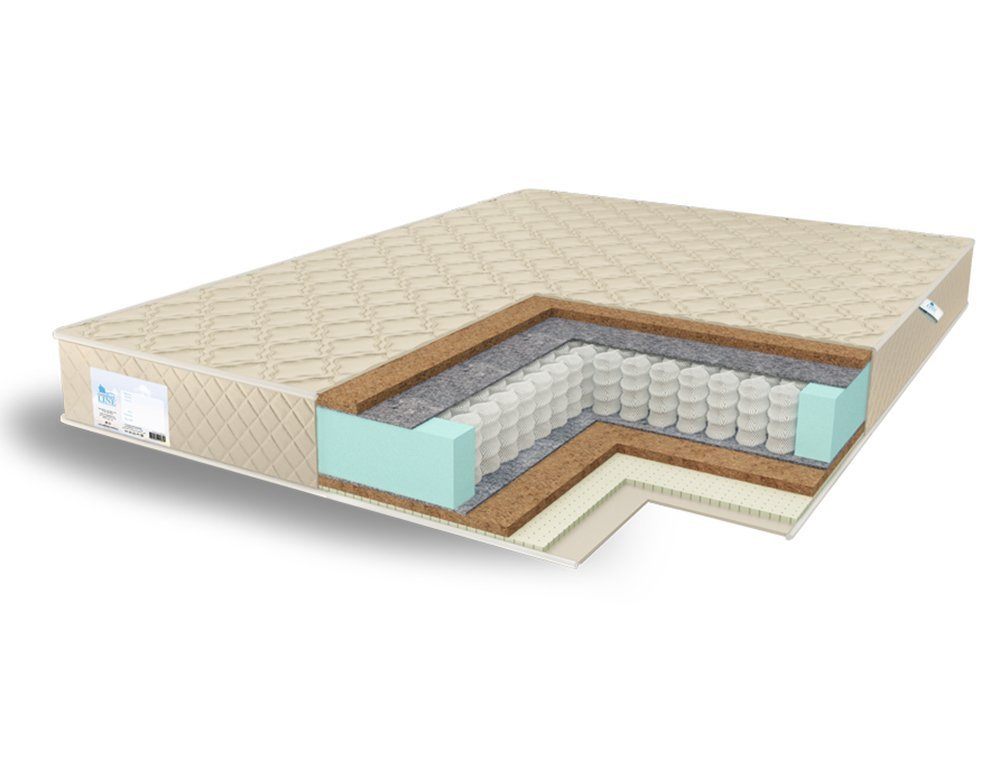 Благодаря комбинации наполнителей матрас приобрёл не только ортопедический, но и анатомический эффект. Койра обеспечивает должную поддержку для спины, а натуральный латекс подстраивается под анатомию своей эластичностью и гарантирует быстрое расслабление и приятный отдых.