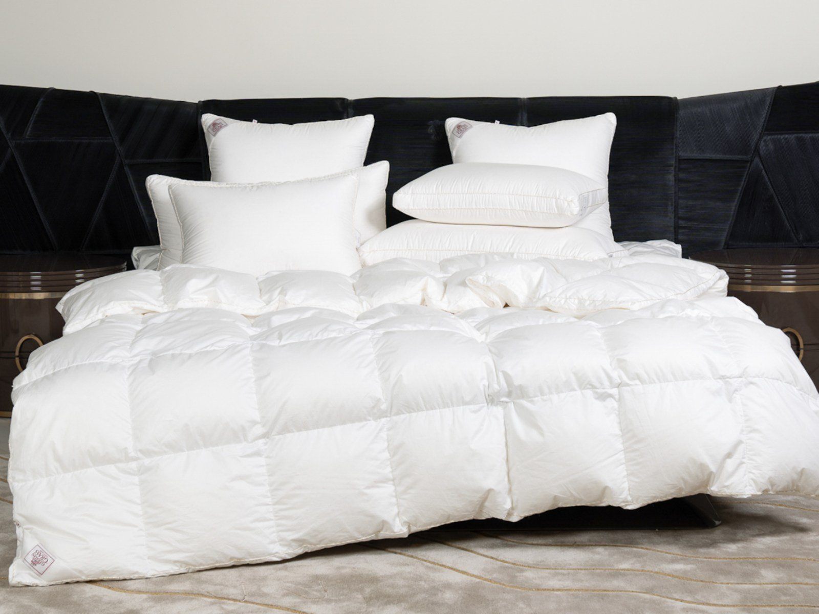 Конструкция изделий коллекции и технология их производства не менее роскошны, чем применяемые в ней материалы: созданные вручную кассетные одеяла с бортиком, состоящие из равномерно заполненных пухом box-кассет, отличаются воздушностью и обеспечивают сбалансированный микроклимат. Широкий бортик в подушках создает дополнительную поддержку головы и мягко разгружает шею во время сна. В трехкамерных моделях внутреннее пухо-перовое ядро обеспечивает несминаемый объем и увеличивает срок службы изделий. Допускается стирка при температуре до 30°С.