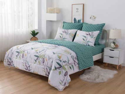 В комплекты комфортеров с одеялом Бернадетт входят наволочки, простыня и легкое всесезонное одеяло. Оцените это современное и очень удобное решение, которое идеально подходит тем, кто не любит возиться с пододеяльниками.