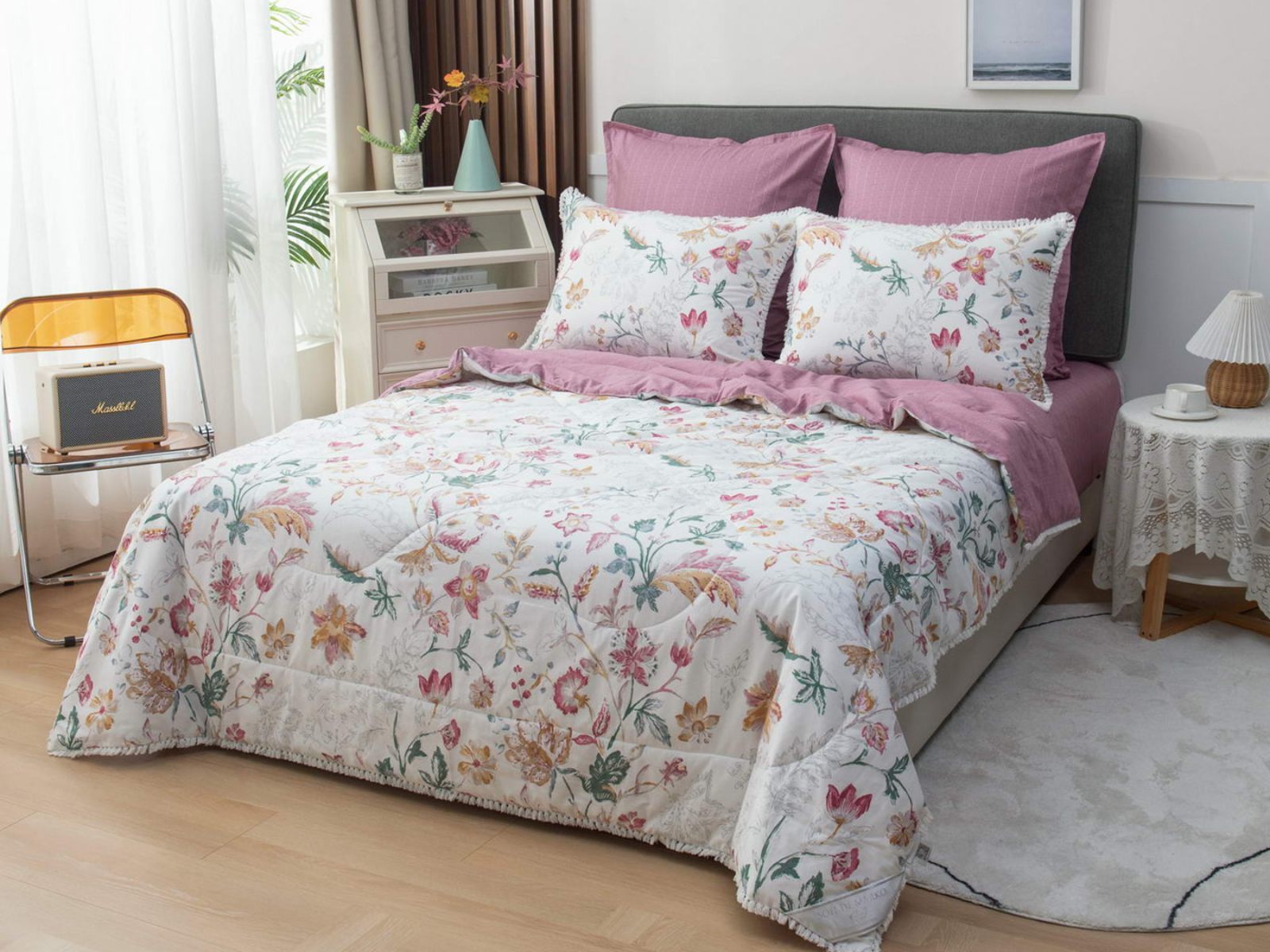 В комплекты комфортеров с одеялом Бернадетт входят наволочки, простыня и легкое всесезонное одеяло. Оцените это современное и очень удобное решение, которое идеально подходит тем, кто не любит возиться с пододеяльниками.