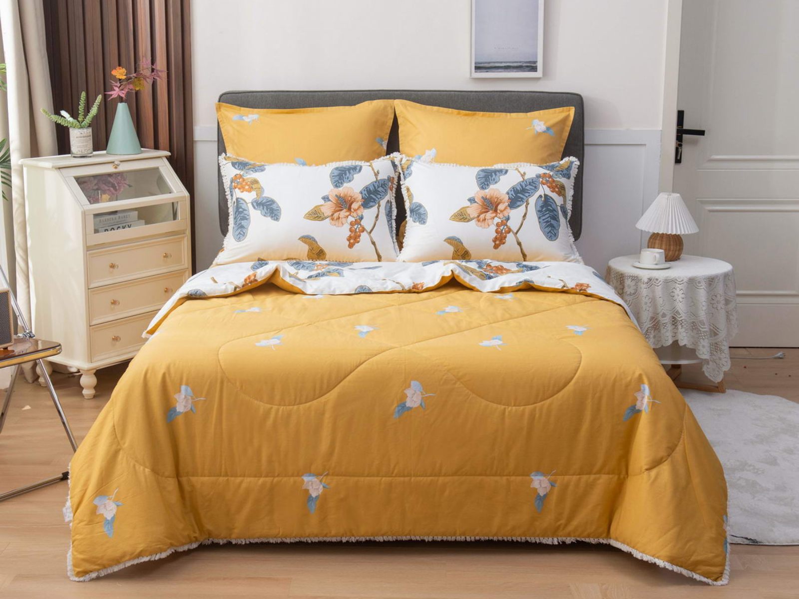 В комплекты комфортеров с одеялом Бернадетт входят наволочки, простыня и легкое всесезонное одеяло. Оцените это современное и очень удобное решение, которое идеально подходит тем, кто не любит возиться с пододеяльниками.