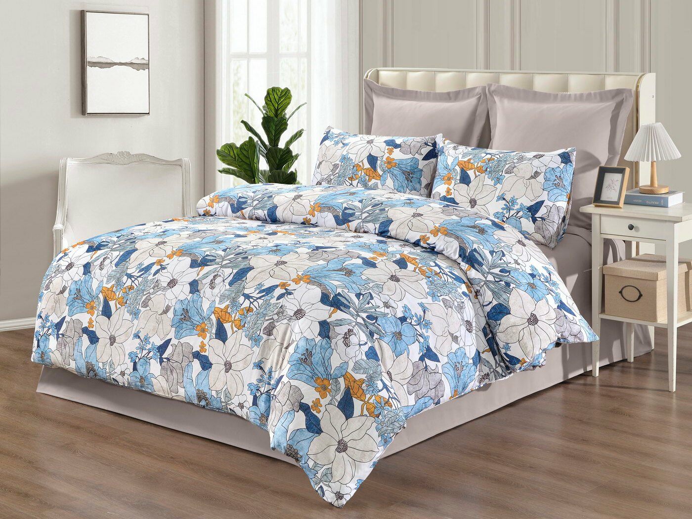 Пошив: пододеяльник на пуговицах, наволочки с клапаном.