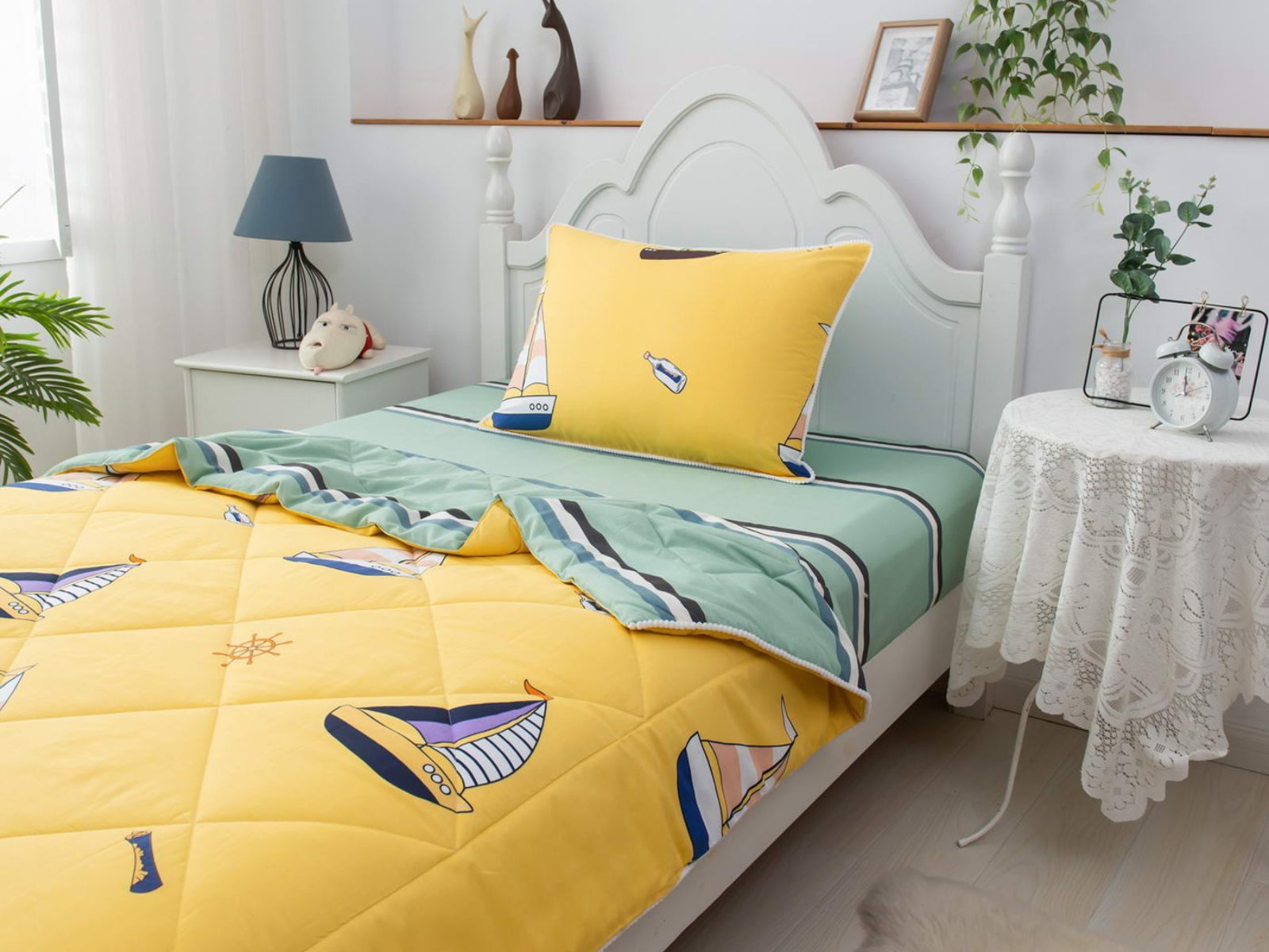 Набор с одеялом прослужит долго без потери качества, а рисунок не потускнеет даже после множества стирок. Комплект легко стирается в обычной машине и также легко гладится. Наборы упакованы в красивые подарочные коробки и могут послужить отличным решением для подарка.