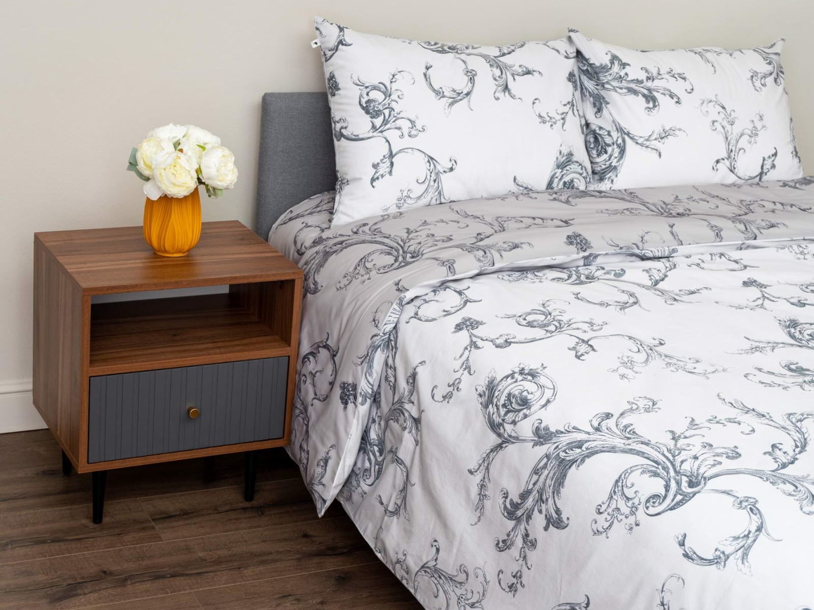 Комплект Мэгги легко стирается в обычной машине в бережном режиме и также легко гладится.