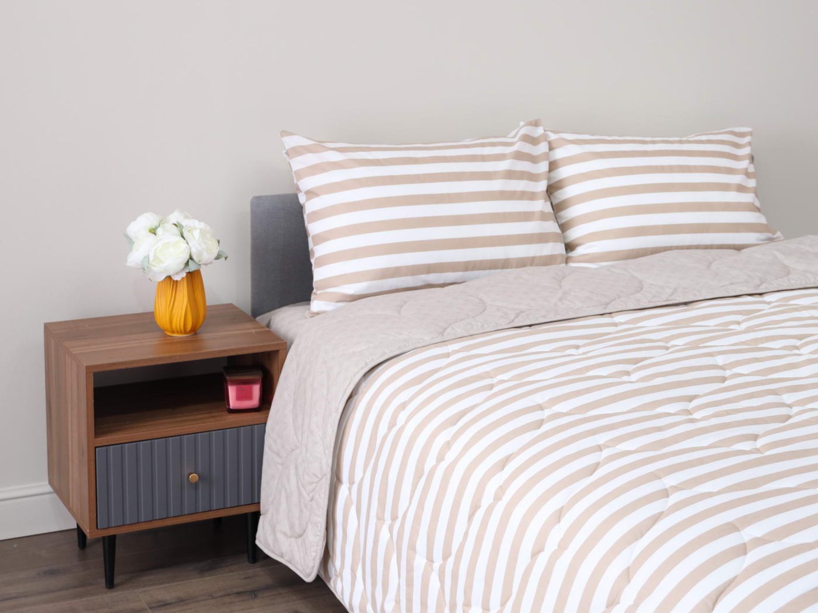 Комплект Мелвин легко стирается в обычной машине в бережном режиме и также легко гладится.