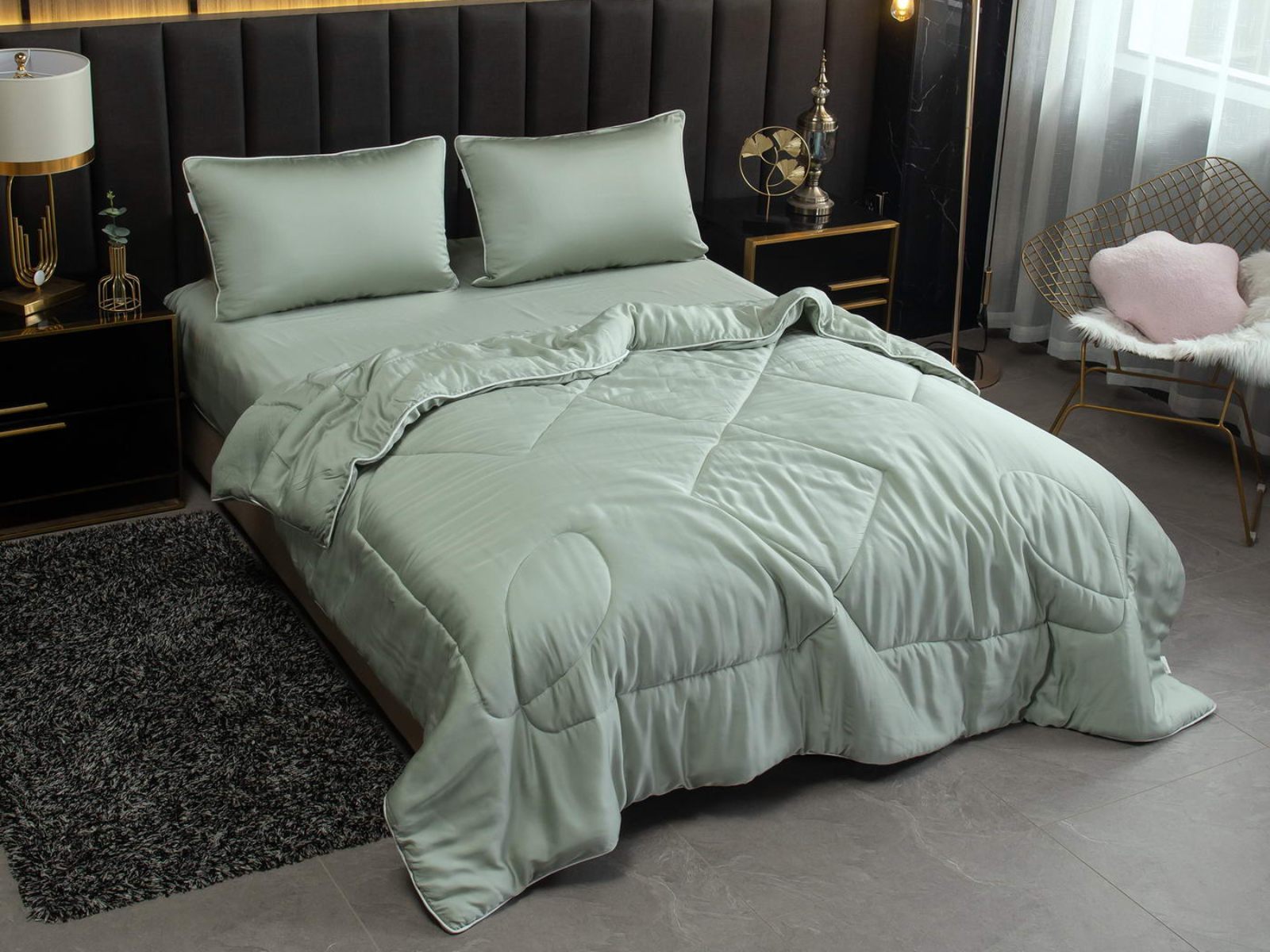 Палитра однотонных комплектов с одеялом Рафаэль – это десять актуальных оттенков. Комплект постельного белья оформлен контрастным кантом на одеяле и наволочках, застегивается на молнию. Одеяло декорировано красивой строчкой, что добавляет изысканности. Комфортеры станут настоящим украшением вашей спальни.