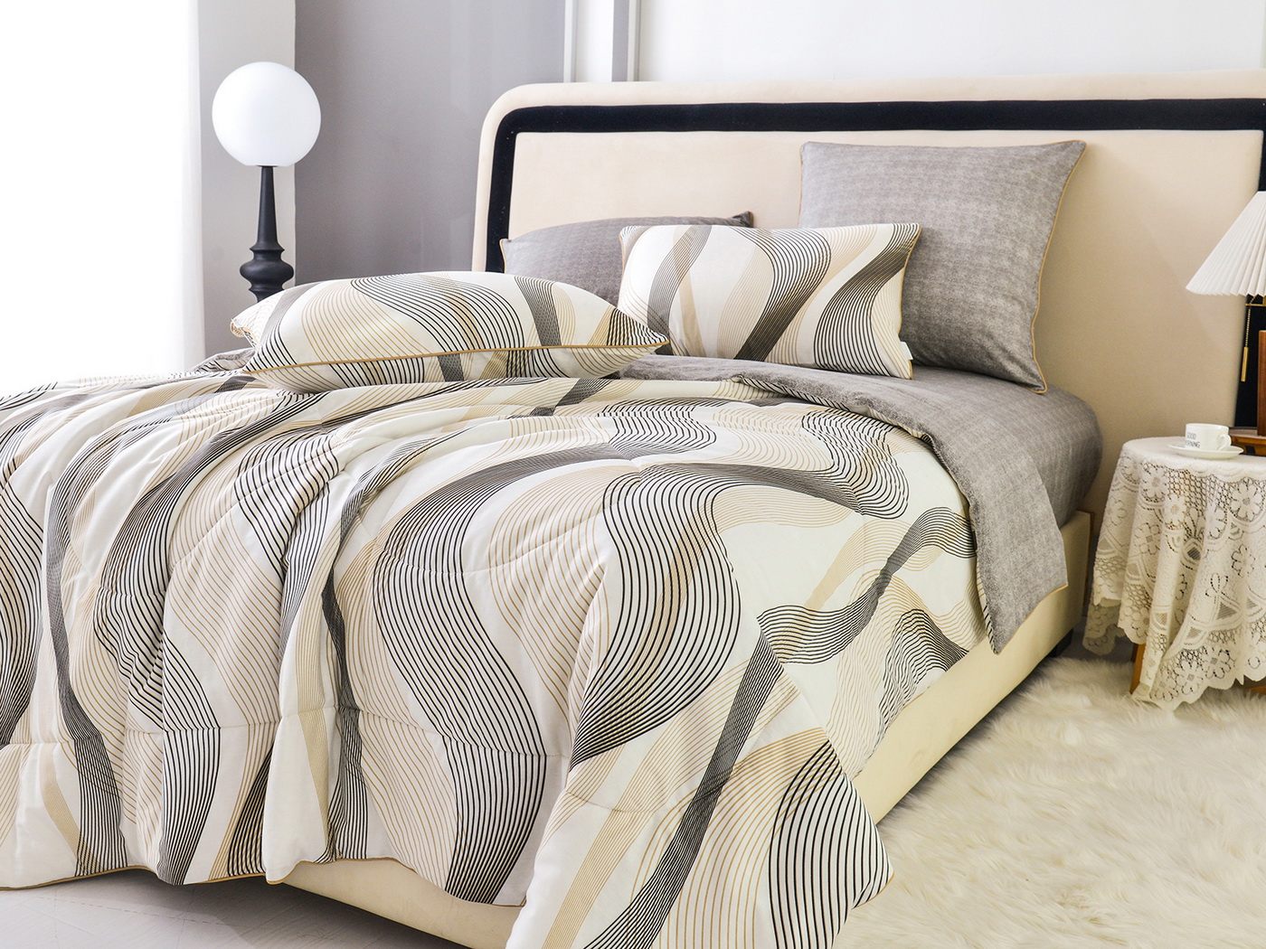 В комплект входит легкое, мягкое, летнее одеяло. Его можно стирать вместе с другим бельем, оно быстро сохнет и после стирки его не нужно гладить.