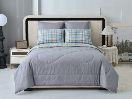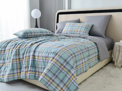 В комплект входит легкое, мягкое, летнее одеяло. Его можно стирать вместе с другим бельем, оно быстро сохнет и после стирки его не нужно гладить.