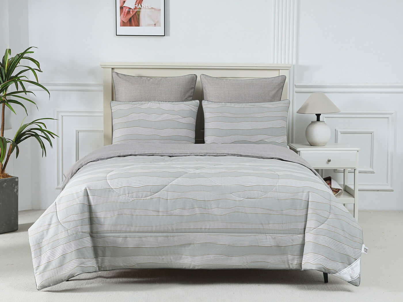 В комплект входит легкое, мягкое, летнее одеяло. Его можно стирать вместе с другим бельем, оно быстро сохнет и после стирки его не нужно гладить.
