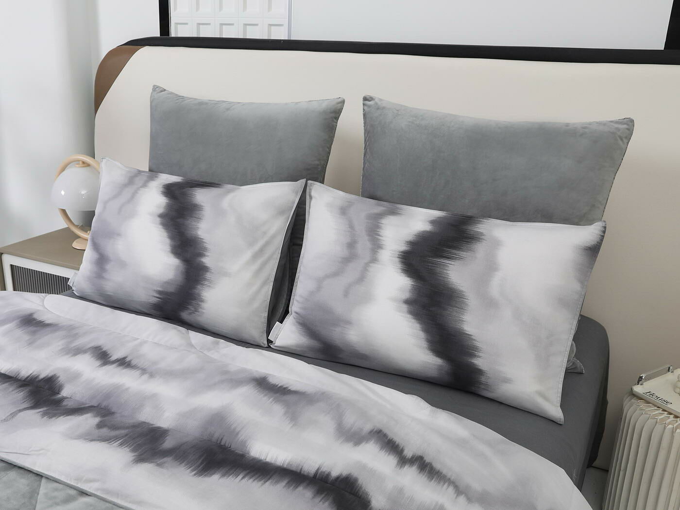 Обратная сторона одеяла – принтованный сатин натуральный хлопковый материал. На ощупь нежная и шелковистая, при этом комфортная и прочная ткань.