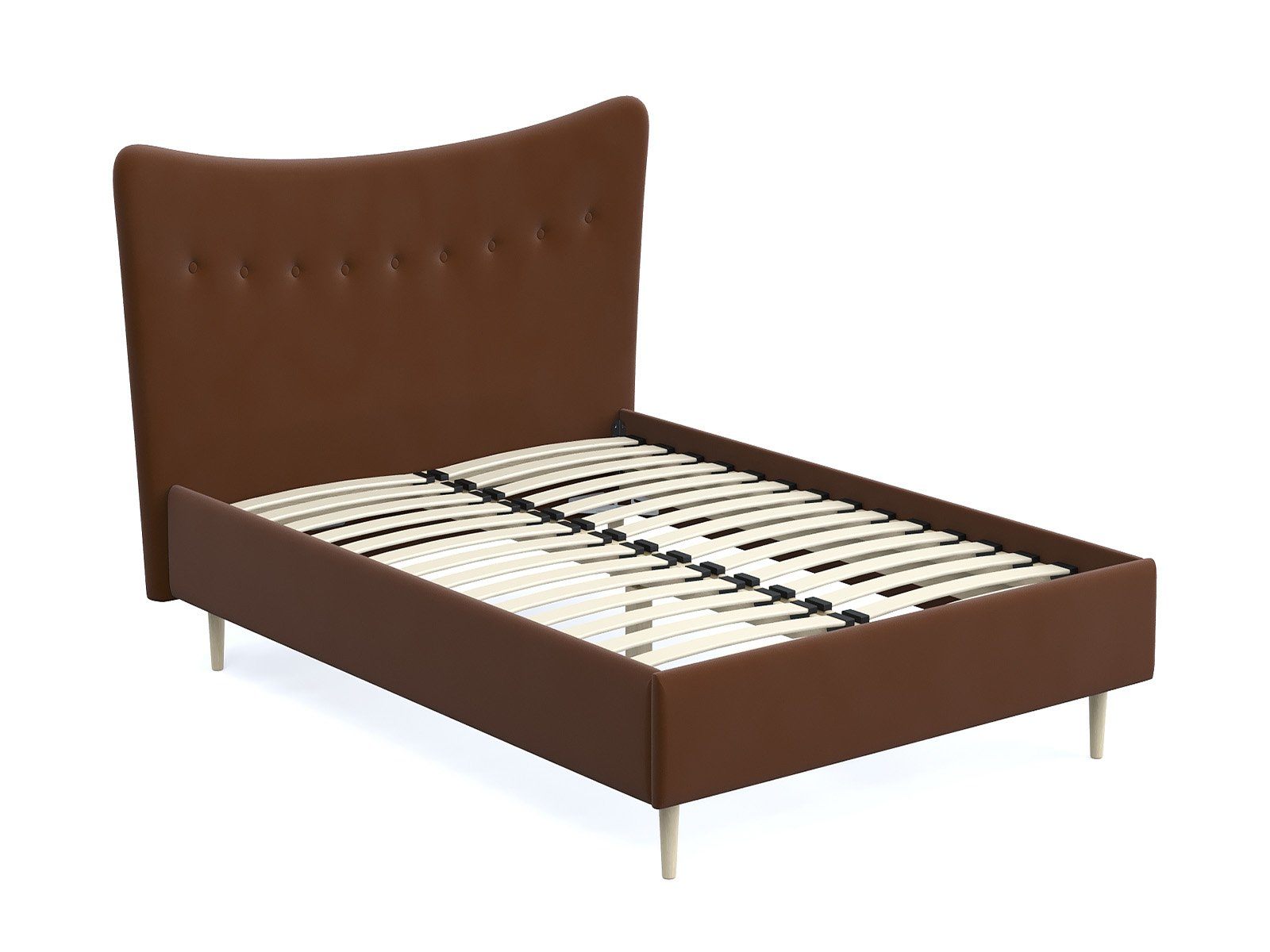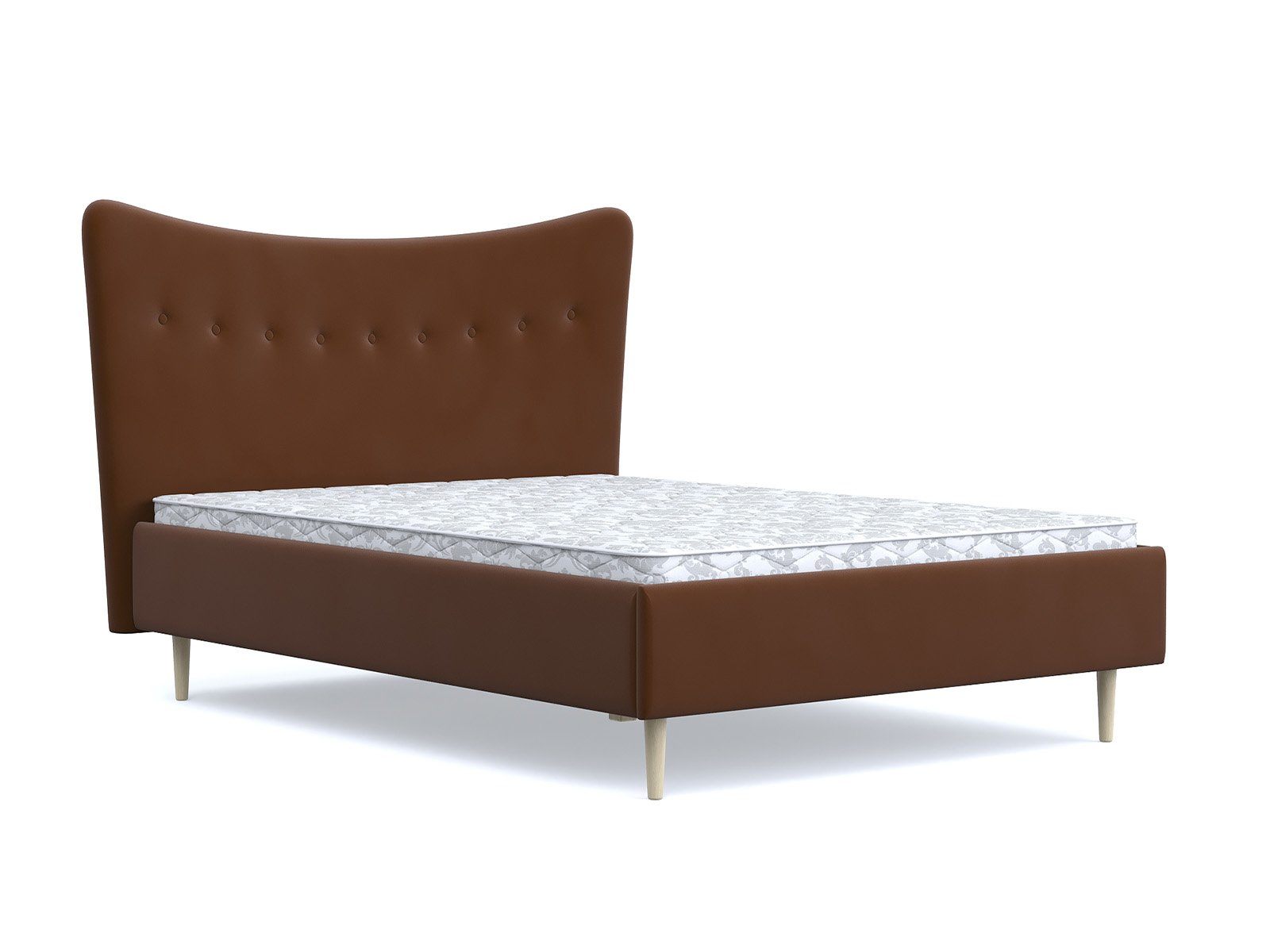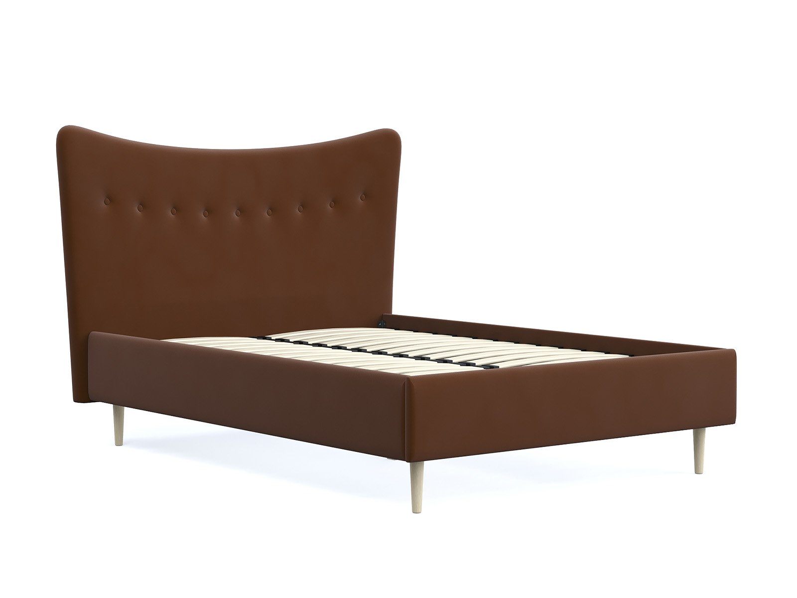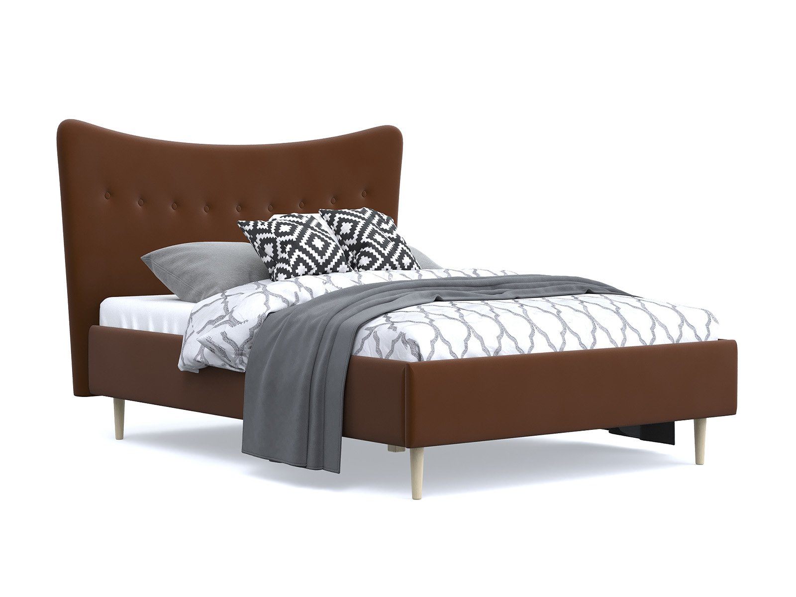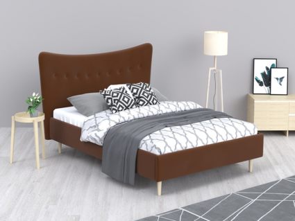 Кровать «Финна» станет оригинальным дополнением любой современной спальни благодаря своему минималистичному дизайну. Модель будет прекрасно сочетаться с окружением в стиле лофт, сканди или даже прованс. Декоративная утяжка на спинке предохраняет обивку от чрезмерного растяжения. Высокие деревянные ножки не только придают кровати визуальной легкости, но и облегчают уборку, в том числе с помощью робота-пылесоса. Каркас из массива сосны отличается высокой прочностью и длительным сроком эксплуатации.