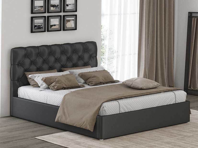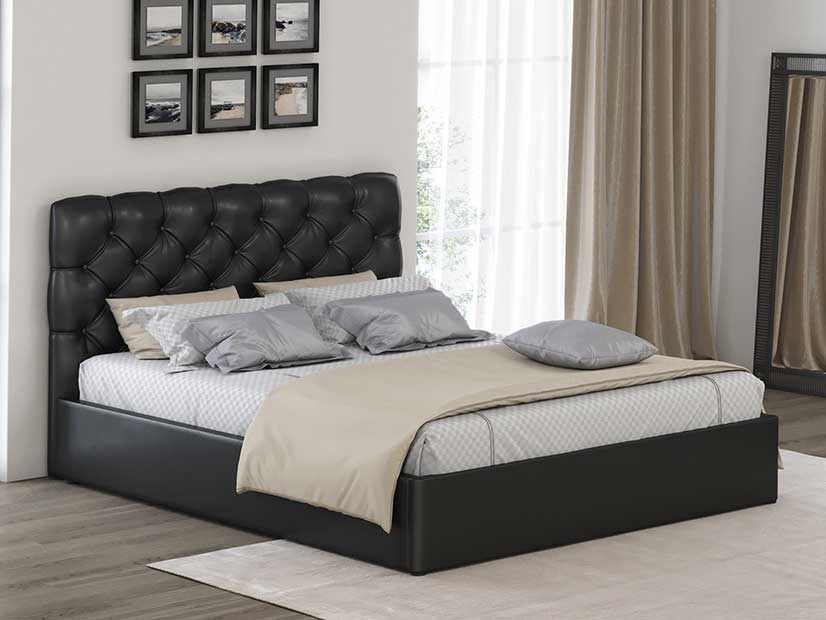 Классическая модель мягкой кровати с каретной стяжкой. Отличительная особенность данной модели – мягкая обивка, перетянутая пуговицами, при этом, складки между ними образуют рисунок готового изделия – ромбы или квадраты. Такая кровать станет прекрасным дополнением спальни любого стиля и поможет создать роскошную и уютную обстановку даже при простой отделке стен. Кровать укомплектована ортопедическим основанием с подъемным механизмом и комплектом дна. Доступна в экокоже, велюре и замше.