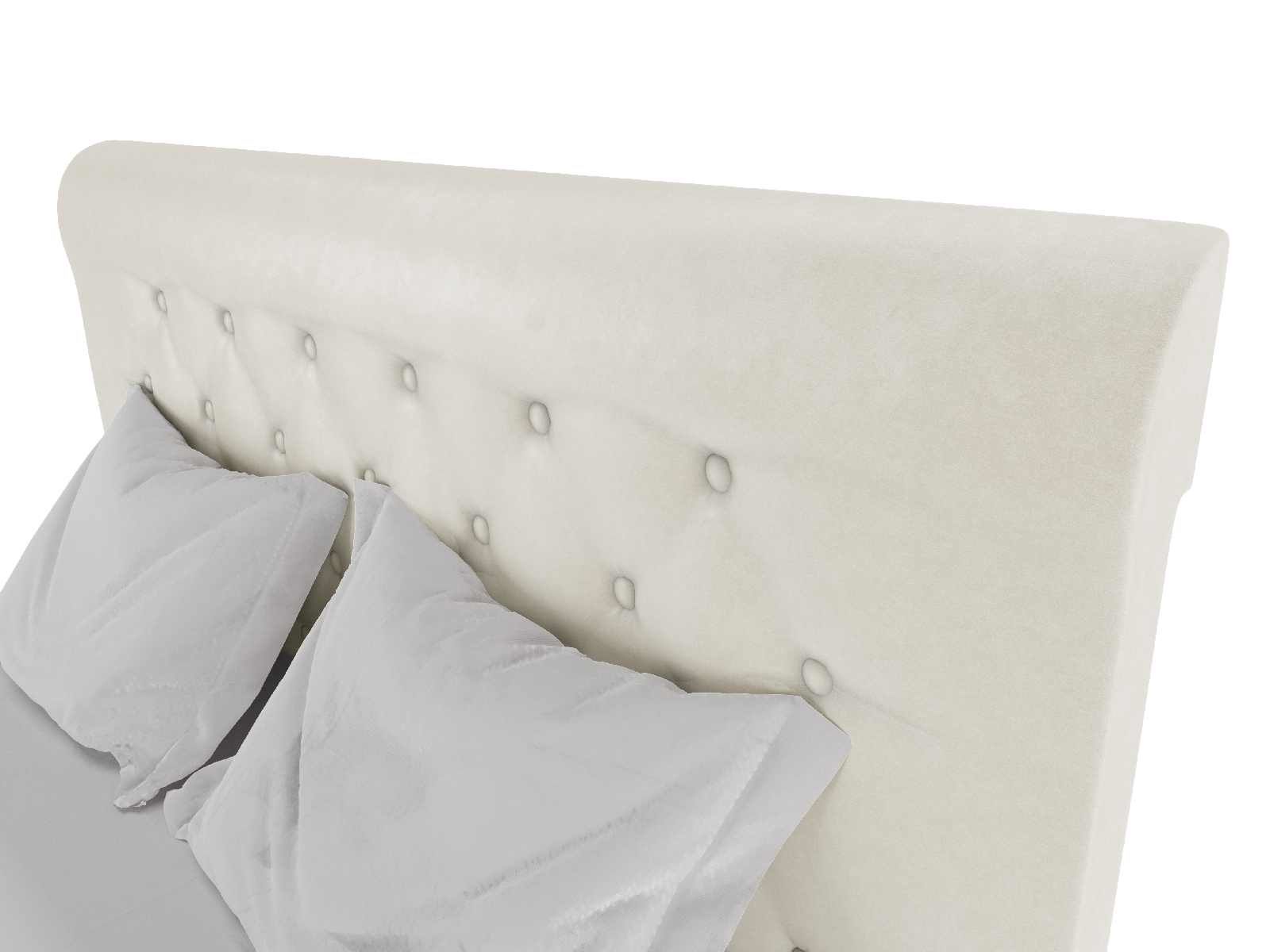 Для обивки кровати используется велюр – мягкий и бархатный материал, который дарит очень нежные соприкосновения. При стандартной комплектации обратная сторона изголовья выполняется из технического материала. Однако по желанию его можно заменить на основную обивку кровати.
