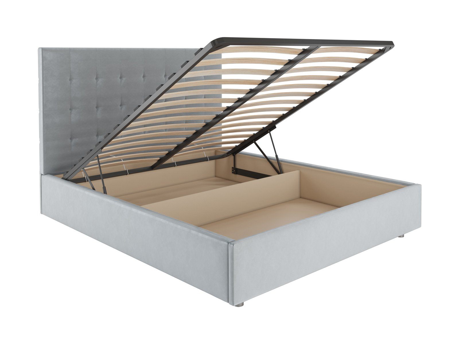 В комплектации с подъемным механизмом кровать имеет вместительный бельевой короб с двумя отделениями.