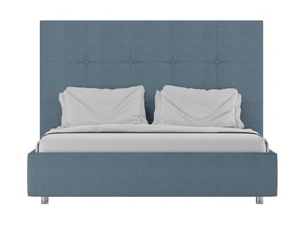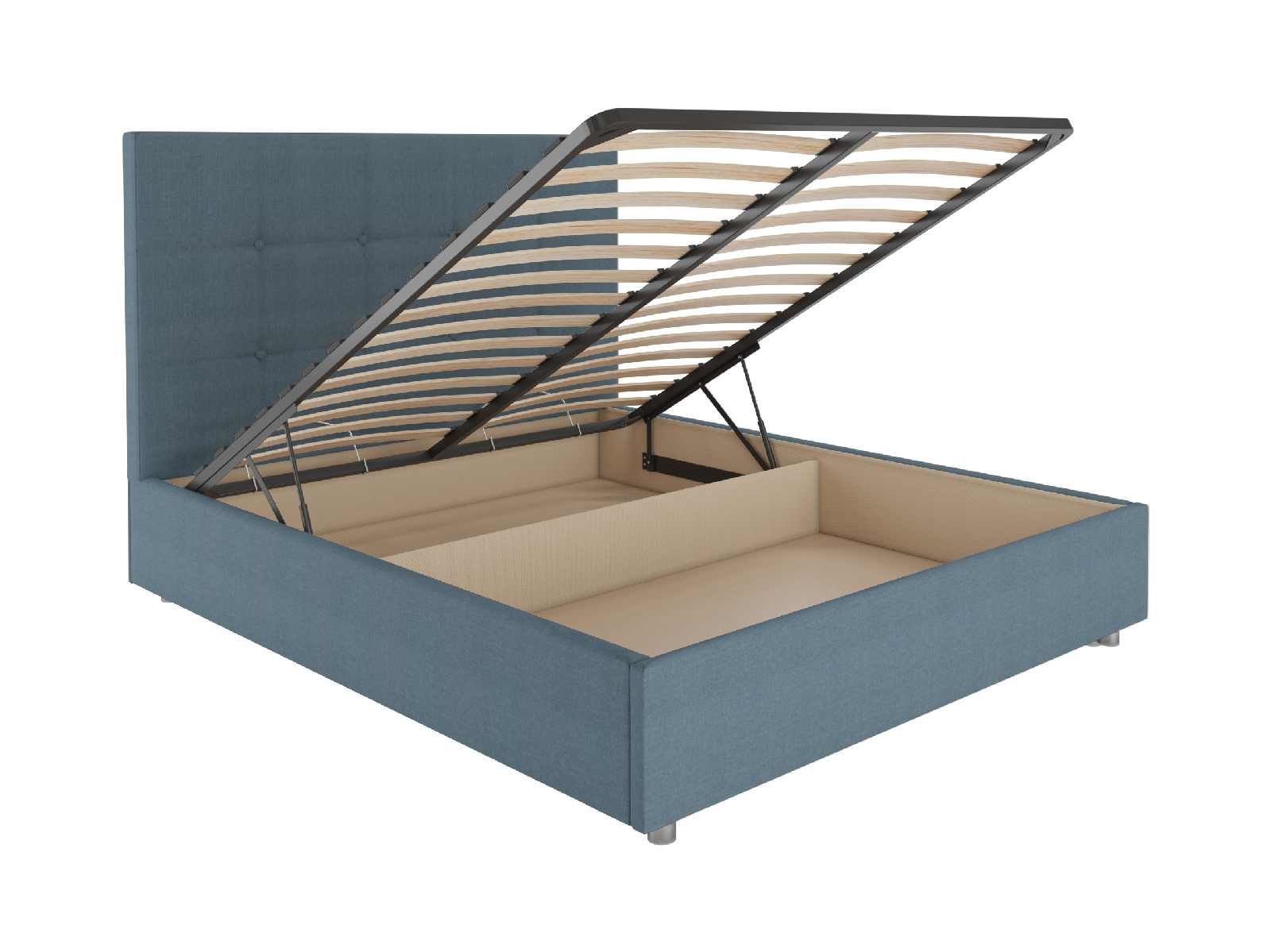Кровать комплектуется металлическим основанием с подъемным механизмом, под которым находится вместительный бельевой ящик для хранения сезонных вещей и постельных принадлежностей.