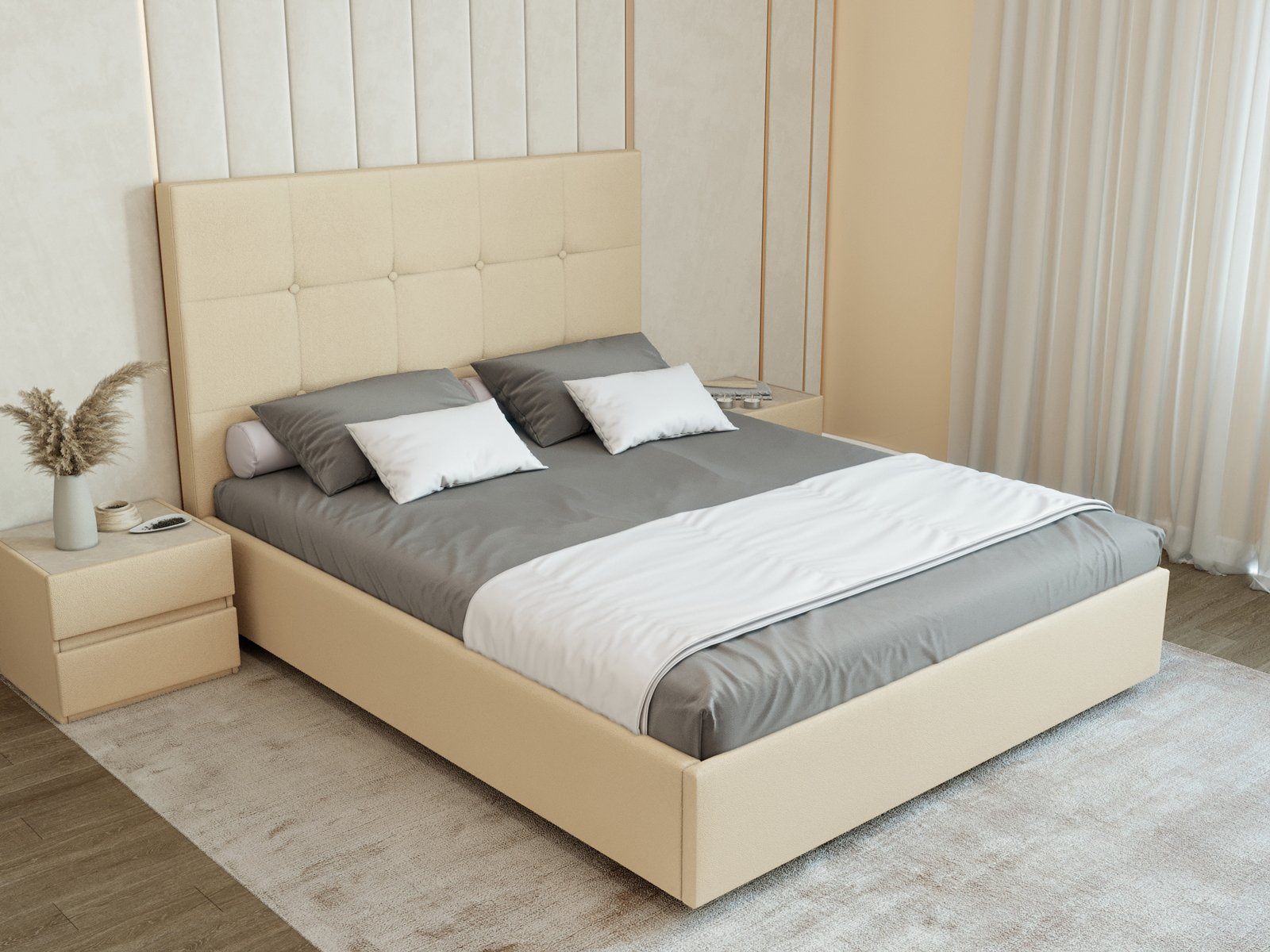 Надежная и стильная кровать Норма с п/м с классической спинкой в виде квадратов и декоративной отстрочкой станет отличным решением для просторной светлой спальни – чего еще можно пожелать для современной обстановки?