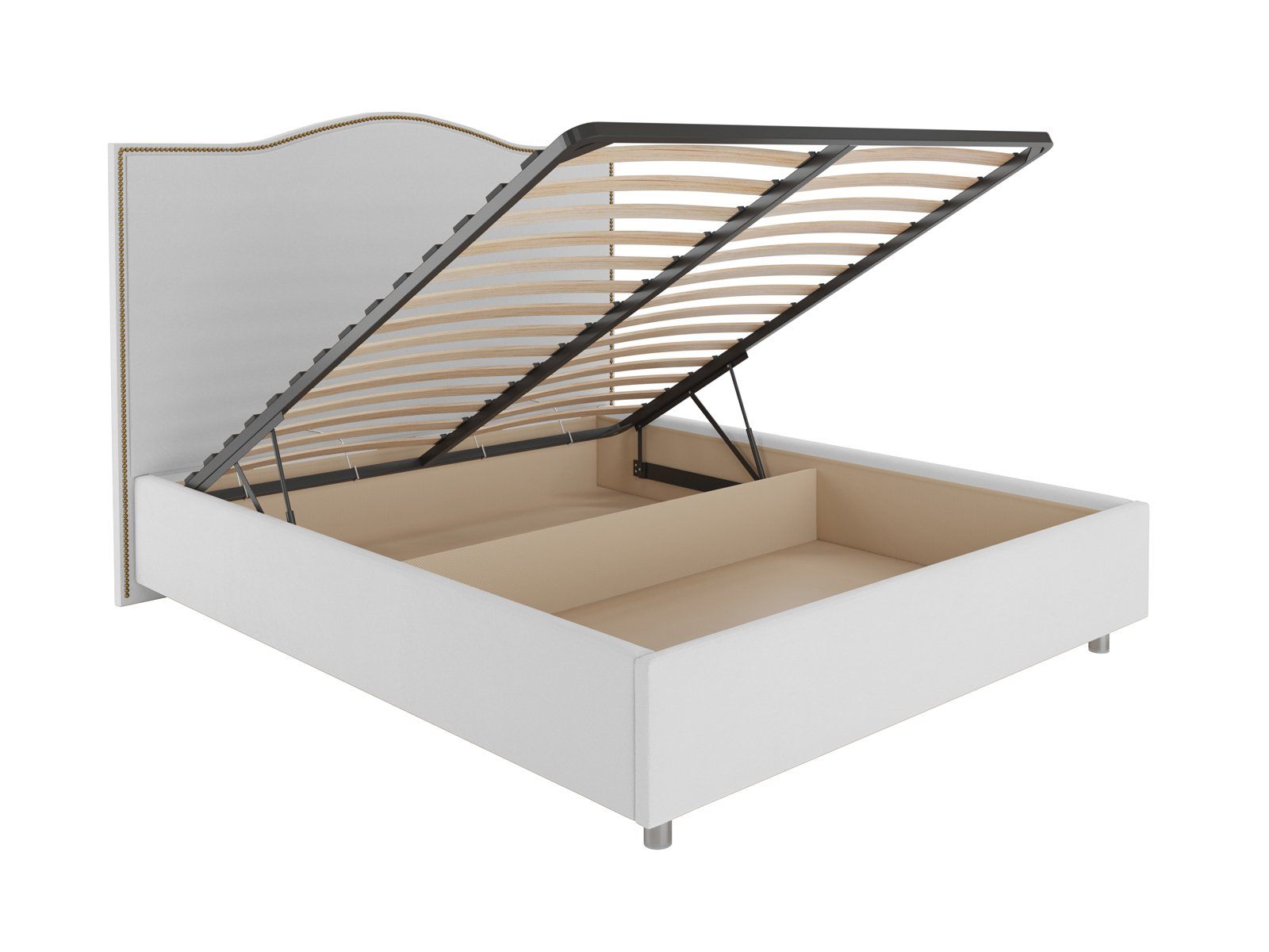 Кровать комплектуется металлическим основанием с подъемным механизмом, под которым находится вместительный бельевой ящик для хранения сезонных вещей и постельных принадлежностей.