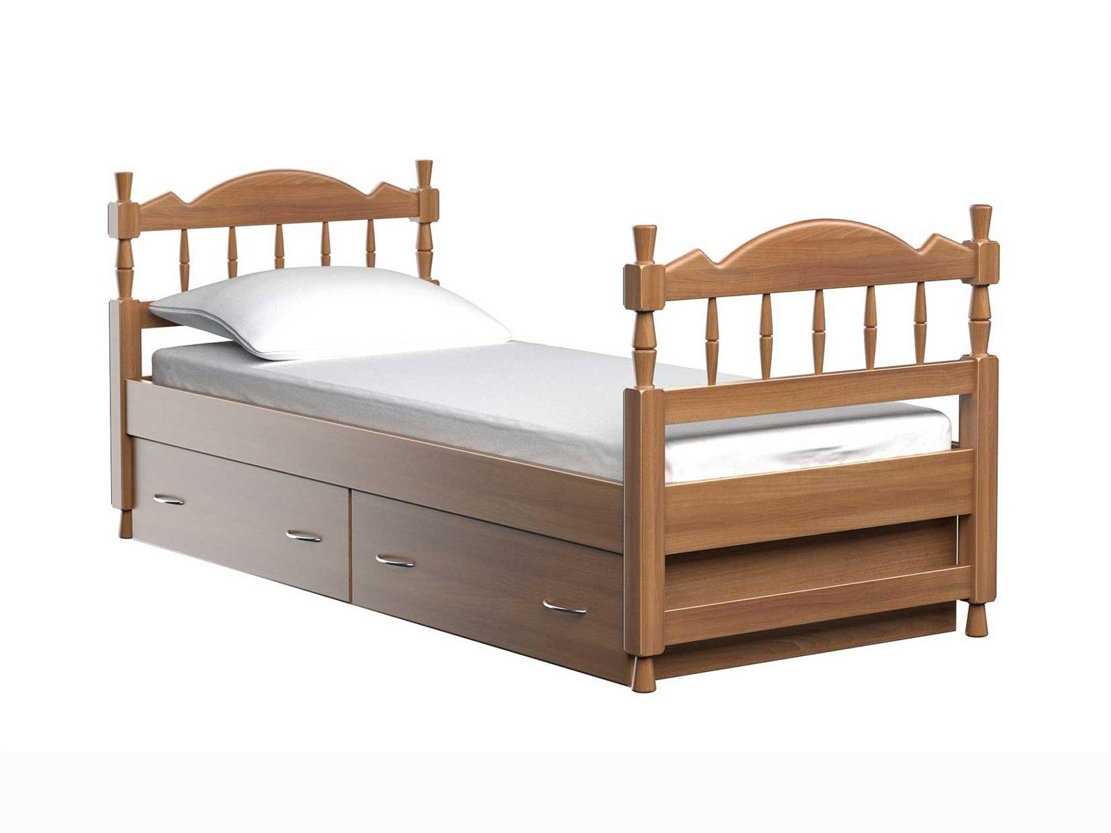 Деревянная кровать из массива бука, выполненная по индивидуальной технологии. Детская кровать идеально впишется в интерьер детской комнаты. Кровать полностью выполнена из натурального дерева. Кровати из массива ценных пород дерева – гарантия экологической чистоты в Вашем доме. Вся мебель покрывается высококачественным полиуретановым лаком (Испания), что защищает поверхность от царапин и прочих повреждений. Модель оснащена прочным основанием из массива ценных пород древесины бука. Внешние размеры: (к размеру спального места) Длина 12 см. Ширина 8 см. Требуется сборка.