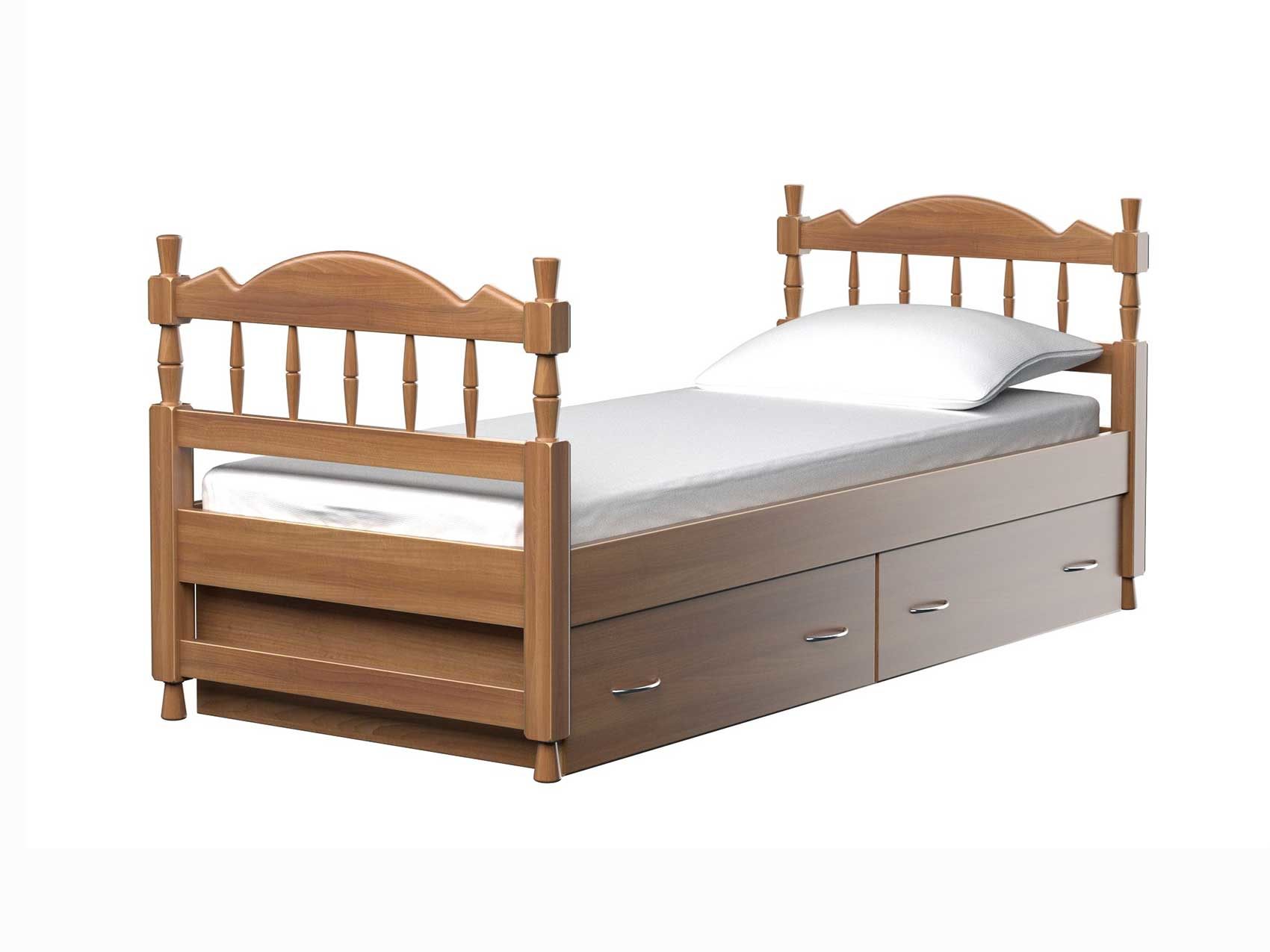 Деревянная кровать из массива бука, выполненная по индивидуальной технологии. Детская кровать идеально впишется в интерьер детской комнаты. Кровать полностью выполнена из натурального дерева. Кровати из массива ценных пород дерева – гарантия экологической чистоты в Вашем доме. Вся мебель покрывается высококачественным полиуретановым лаком (Испания), что защищает поверхность от царапин и прочих повреждений. Модель оснащена прочным основанием из массива ценных пород древесины бука. Внешние размеры: (к размеру спального места) Длина 12 см. Ширина 8 см. Требуется сборка.