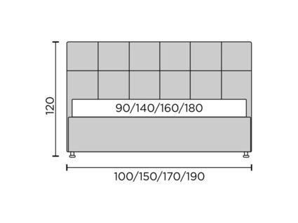 Кровать оснащена основанием с ламелями и подъемным механизмом. Рекомендуемая высота матраса до 30 см, вес матраса до 50 кг.