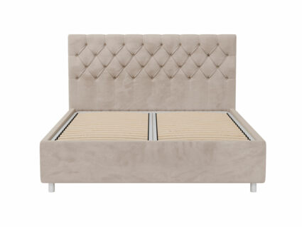 Продуманный дизайн спинки украсит минималистичный и классический интерьер. Классическая каретная стяжка на изголовье привлекает внимание и делает её невероятно эстетичной и изысканной.