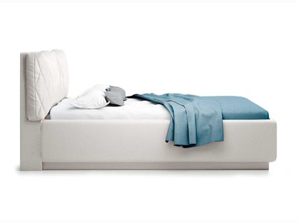 Модель Celeste от Nuvola — современная интерьерная кровать с оригинальным мягким изголовьем, декорированным двумя объемными подушками, которые с легкостью можно отстегнуть от изголовья для перемещения или приподнять на матрас для изменения угла наклона подушки — высокий уровень комфорта и поддержка спины во время чтения книг, просмотра любимых фильмов или работы за ноутбуком!