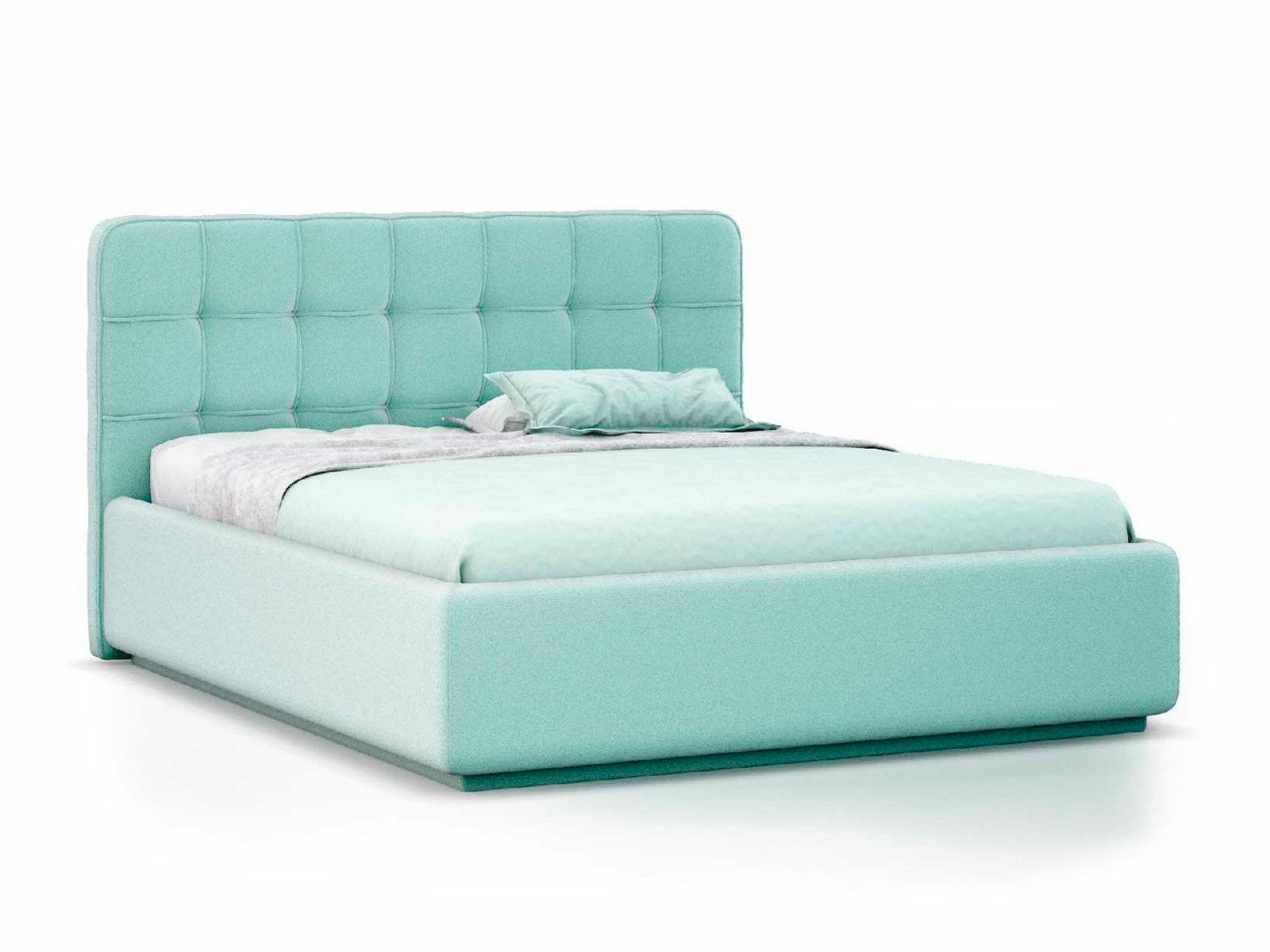 Кровать укомплектована IQ с подъемным механизмом и ящиком для белья без дна (дополнительная платная опция - дно к ящику IQ из HDF (ХДФ). Каркас кровати на цоколе, декоративный чехол на цоколе съёмный. Глубина ящика для белья - 30 см, без ограничения нагрузки на ящик.