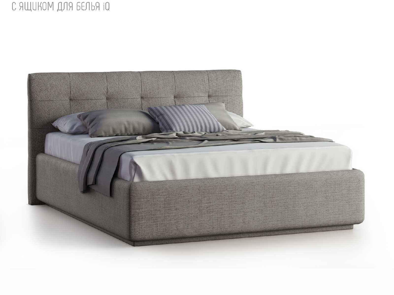 Кровать укомплектована IQ с подъемным механизмом и ящиком для белья без дна (дополнительная платная опция - дно к ящику IQ из HDF (ХДФ). Каркас кровати на цоколе, декоративный чехол на цоколе съёмный. Глубина ящика для белья - 30 см, без ограничения нагрузки на ящик.
