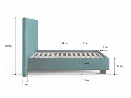Кровать соответствует самым модным тенденциям и прекрасно впишется в современный интерьер просторной спальни. Высокая спинка с мягкими элементами выглядит эффектно. Поворотный механизм боковых элементов изголовья меняет форму, создавая более уютную атмосферу в спальне. Увеличенная прочность кровати достигается за счет металлического каркаса по периметру. Массивные ножки, выполнены из бука цвета венге. Расстояние от пола до царг способствует легкой уборке под кроватью, в том числе роботом – пылесосом. При желании возможно установить подъемный механизм с бельевым коробом либо трансформируемое основание Aquarius.
