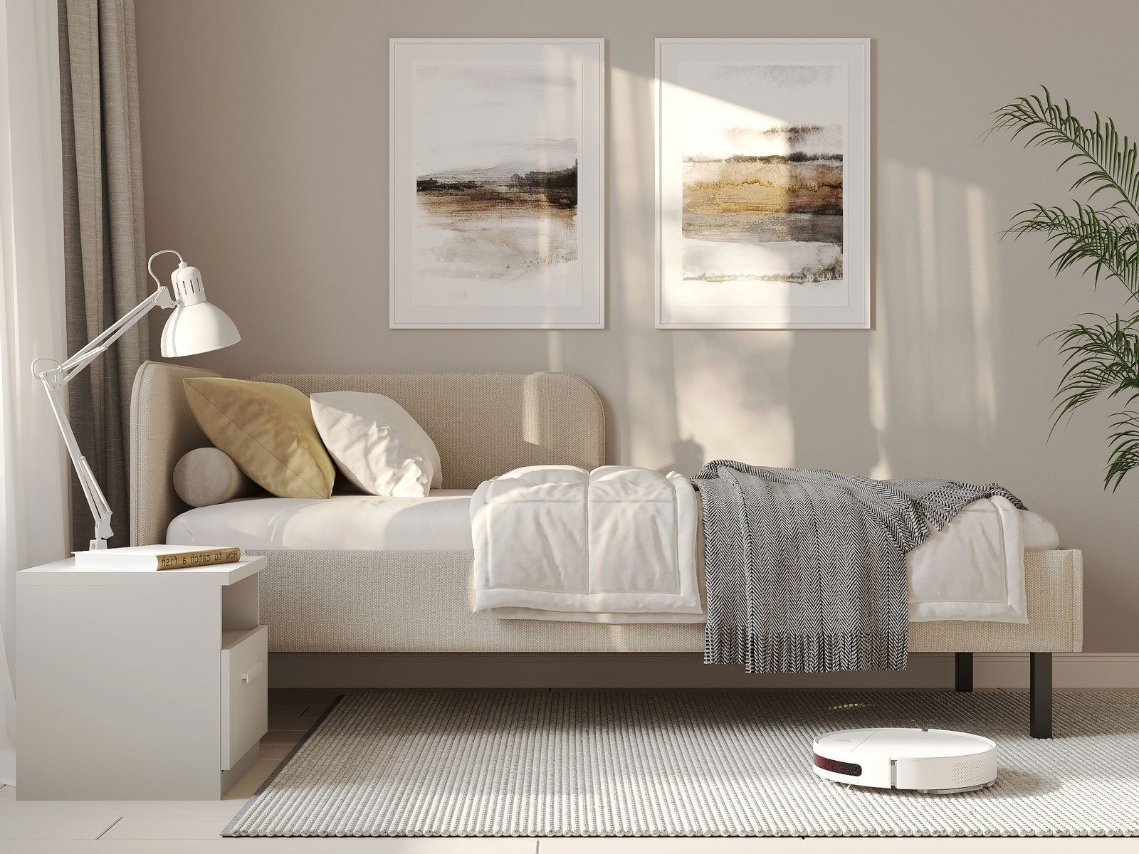 Лаконичная кровать Julia подойдет для спален в скандинавском стиле и стиле минимализм. Мягкое изголовье в рогожке популярных цветов, закругленные углы, декоративный кант, узкие царги делают кровать универсальной для большинства современных интерьеров. Угловое изголовье создает уютную атмосферу. Боковая спинка составляет половину царги, устанавливается на выбор с правой, или с левой стороны кровати. Благодаря двойному изголовью кровать можно разместить в любом месте комнаты. Увеличенное расстояние до царг способствует легкой уборке под кроватью роботом – пылесосом. Модель укомплектована ортопедическим основанием с ламелями. Основание, изголовье и царги надежно крепятся между собой, обеспечивая прочность и устойчивость кровати.