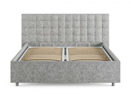 Кровать комплектуется металлическим основанием и подъемным механизмом со вместительным бельевым ящиком. Дно бельевого ящика легко сдвигается для обеспечения уборки под кроватью.