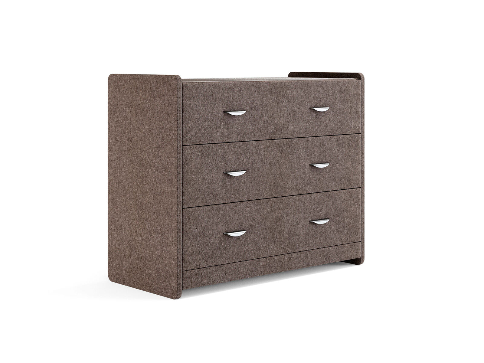 Современный и элегантный комод отличается повышенным удобством. Фасад ящиков и стенки комода покрыты обивочным материалом и выполняются в 43 вариантах цветового исполнения. Для удобства использования и продления срока эксплуатации, рекомендуется использовать стеклянную накладку. Накладка используется в качестве столешницы для тумбы и защищает ее от повреждений и загрязнений. Стеклянная столешница заказывается дополнительно.
