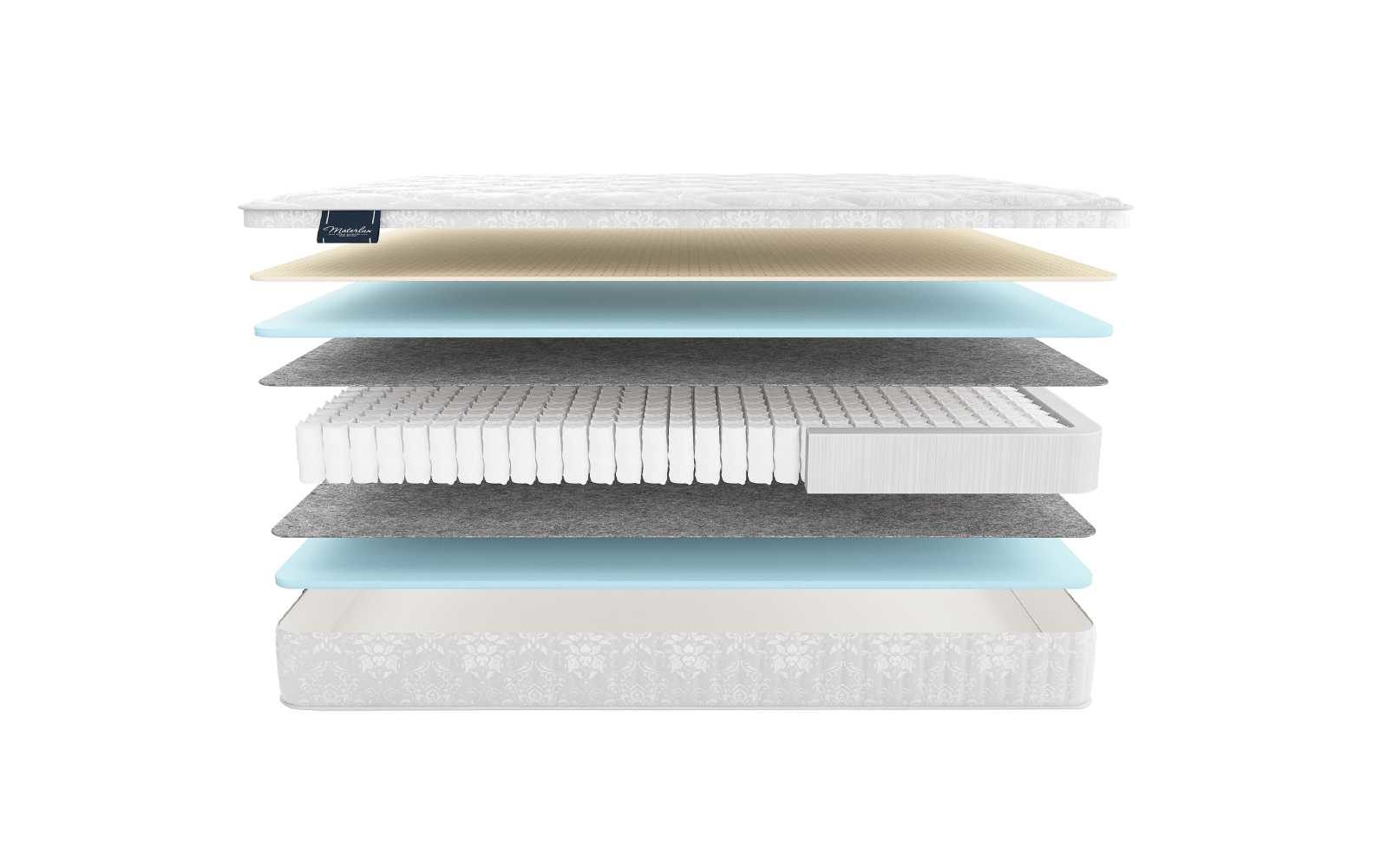 Независимый пружинный блок (256 пружин на спальное место) равномерно распределяет нагрузку всего тела и создает анатомическую поддержку для необходимого расслабления тела и правильного положения позвоночника. С другой стороны, слой фетра и универсальной пены natural foam придадут матрасу среднюю жесткость.