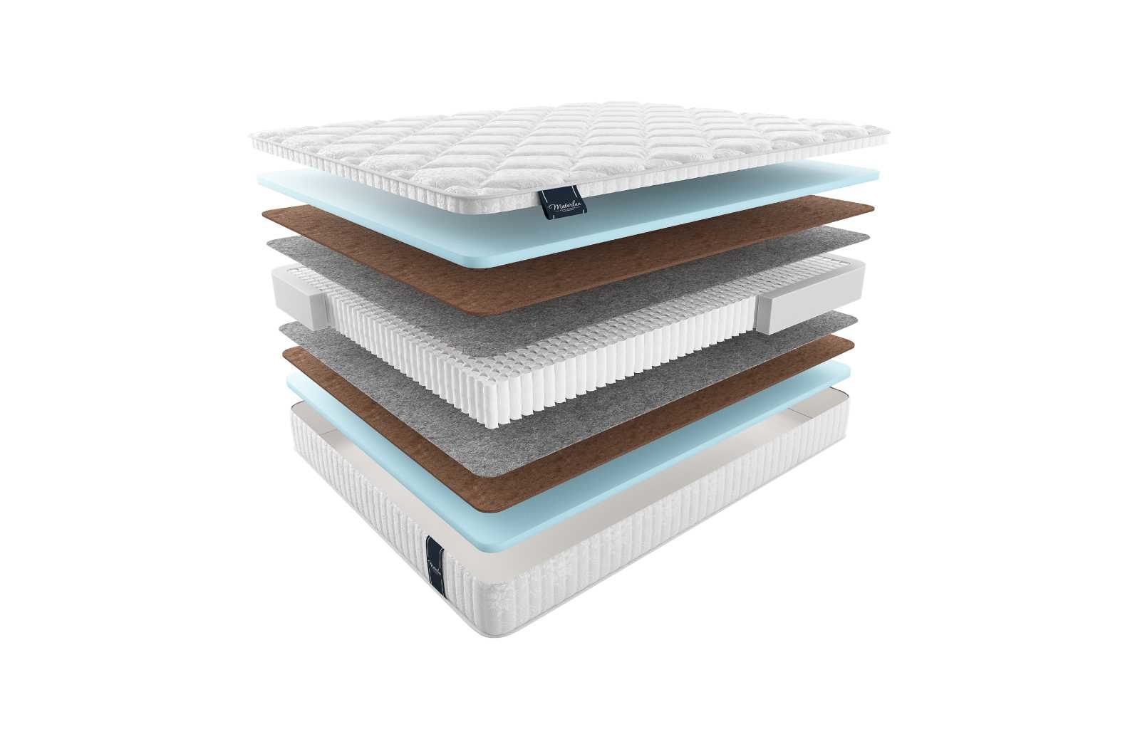 Ещё один слой, который присутствует с каждой из сторон – это койра кокоса. Жёсткий натуральный материал великолепно удерживает фигуру. Он не позволяет телу сильно проваливаться в текстуру матраса, а напротив передаёт гармоничную поддержку и опору для всех естественных изгибов спины.