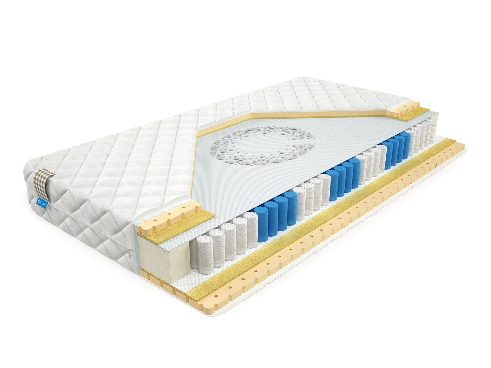 Матрас BioCrystal Cactus XL - матрас средней жесткости с сизалью и латексом. Матрас c ортопедическим эффектом на основе семи-зонного пружинного долговечного блока независимых пружин SIlverSpringPocket 7 zone. Данный блок насчитывает 580 металлических пружин на одно спальное место, это оптимальное количество пружин для бюджетного матраса. 7 зональный пружинный блок SSP 580 значительно прочнее обычного блока независимых пружин, и имеет большее количество витков, что, в свою очередь, лучше сказывается на упругости матраса и качестве сна. Матрас насчитывает семь зон жесткости и правильно повторяет изгибы позвоночника во время сна или отдыха. С каждой стороны матраса расположен латексированный сизаль по 1 сантиметру и по 3 сантиметра пенополиуретана. Сизаль - это натуральный материал на основе растения Агавы, пропитанное латексом. Очень жесткий, экологически чистый, влагоустойчивый материал.