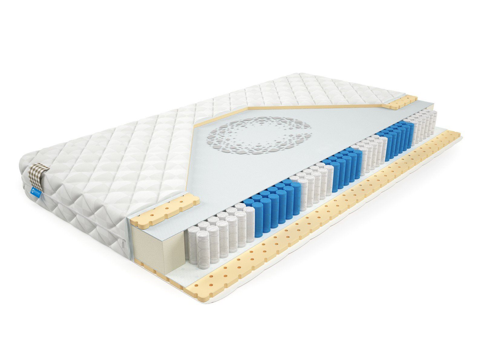 Матрас BioCrystal Effect L - недорогой матрас низкой степени жесткости с латексом. Матрас c ортопедическим эффектом на основе семи-зонного пружинного долговечного блока независимых пружин SIlverSpringPocket 7 zone. Данный блок насчитывает 1000 металлических пружин на одно спальное место, это оптимальное количество пружин для бюджетного матраса. 7 зональный пружинный блок SSP 1000 значительно прочнее обычного блока независимых пружин, и имеет большее количество витков, что, в свою очередь, лучше сказывается на упругости матраса и качестве сна. Матрас насчитывает семь зон жесткости и правильно повторяет изгибы позвоночника во время сна или отдыха. С каждой стороны матраса расположены по 2 сантиметра натурального латекса, что делает матрас мягким и упругим одновременно.