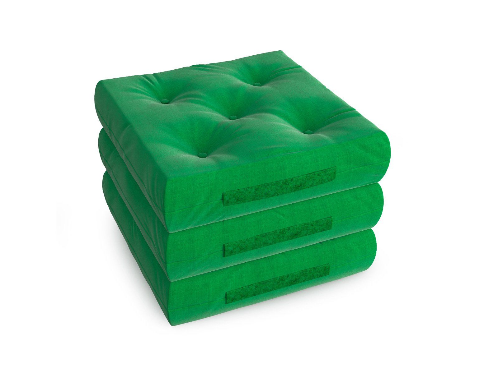 Несъемный чехол футона выполнен из плотной зеленой ткани. Она обладает высокой плотностью, износостойкостью, ее легко очищать от загрязнений и пятен.